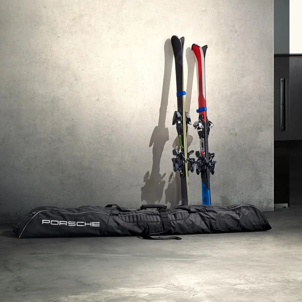Der Skisack wurde von Porsche Tequipment fahrzeugspezifisch entwickelt und auf Crashsicherheit getestet. Durch die Befestigung an zwei Zurrösen können Skier und Snowboards damit sicher transportiert werden.