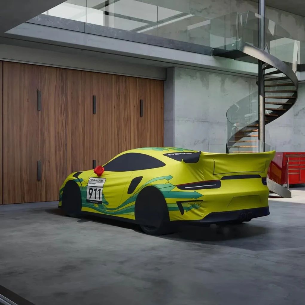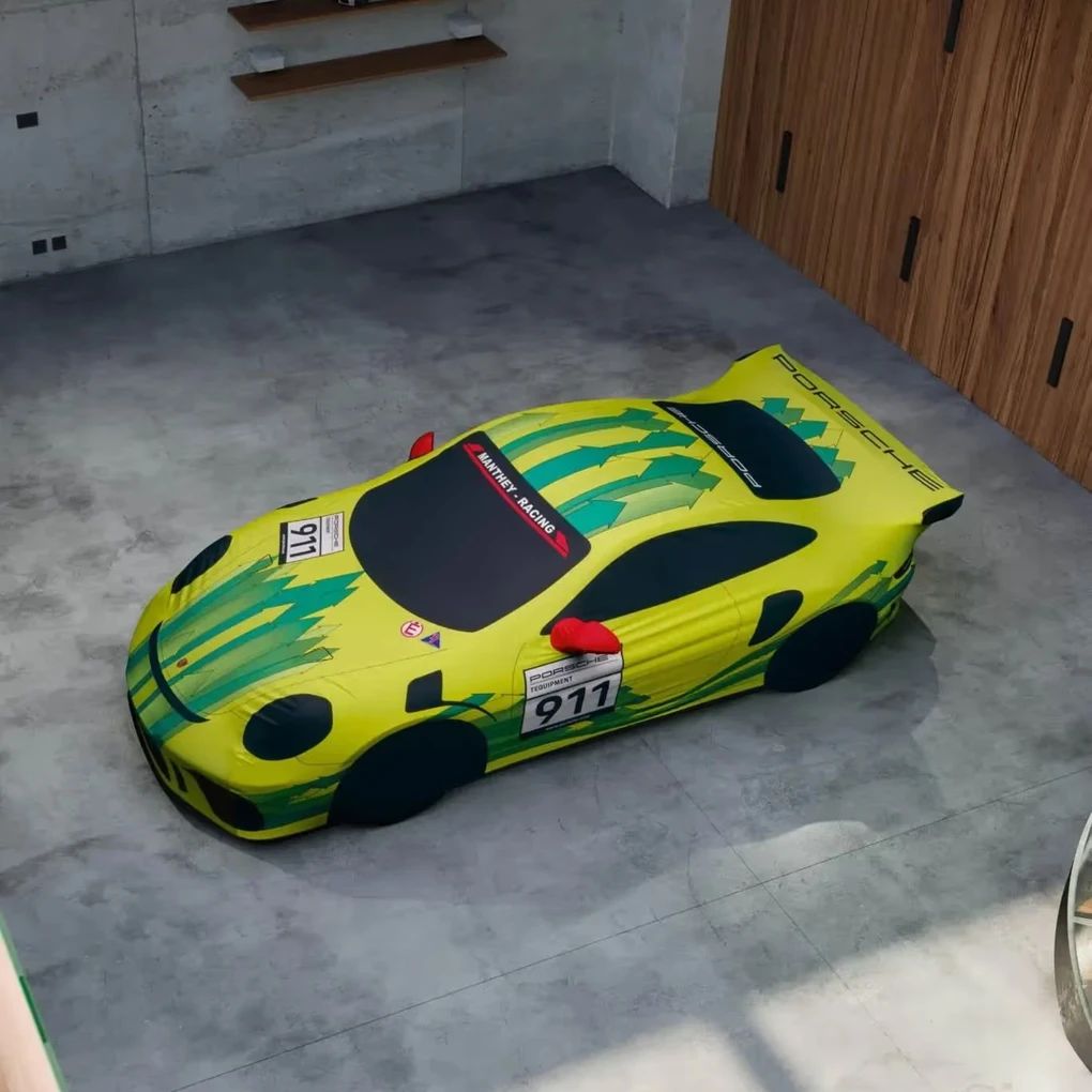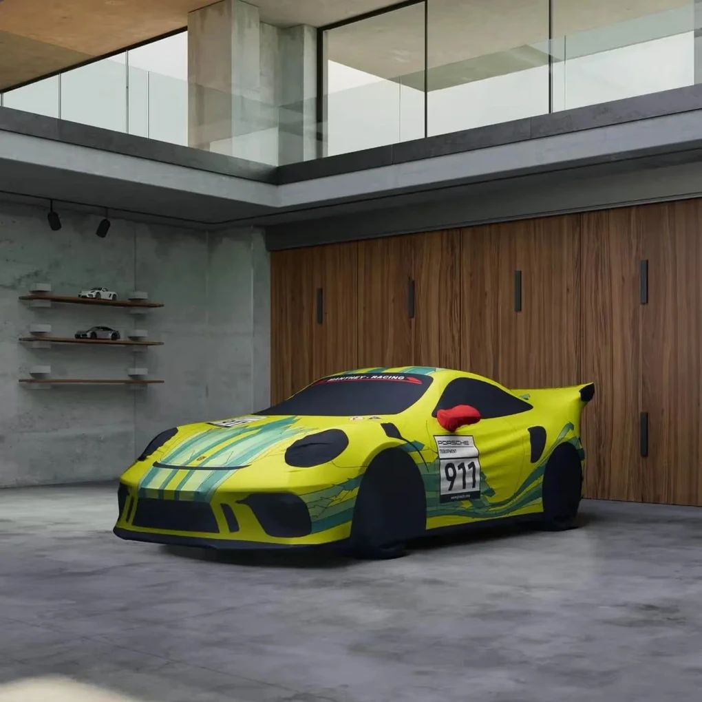Mit dem „Grello“ Indoor-Car-Cover holen Sie sich das Kultdesign einer Nürburgring-Ikone und damit ein Stück Motorsportgeschichte in die eigene Garage: Das Car-Cover ist dem legendären gelb-grünen 911 GT3 R Rennwagen „Grello“ mit der Startnummer #911 von Manthey-Racing nachempfunden, der mit seiner auffälligen neonfarbenen Lackierung ein wahrer Hingucker ist.