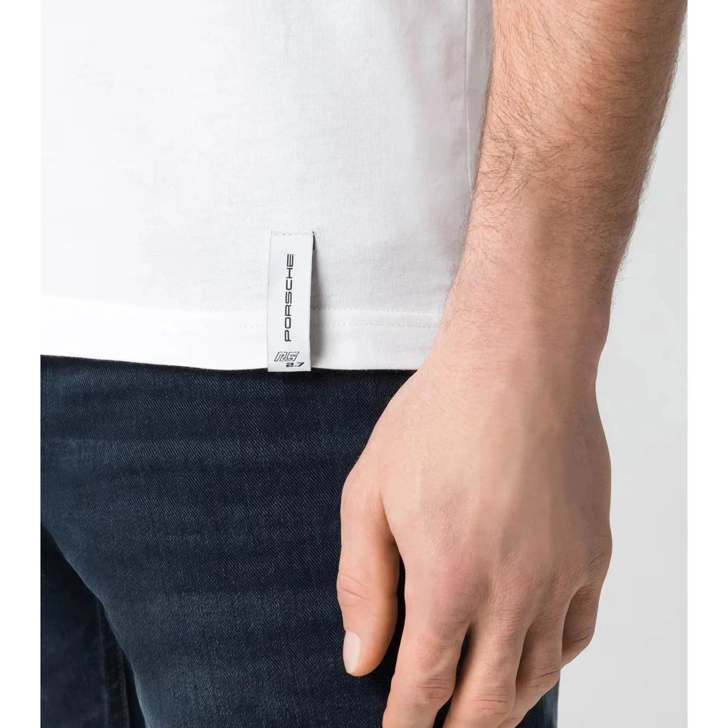 Ein Stück Porsche Historie – für den Alltag: das lässige Halbarm-T-Shirt mit RS 2.7 Flockdruck auf der Brust ist wie dafür gemacht, seine historische Porsche Liebe zum Ausdruck zu bringen.