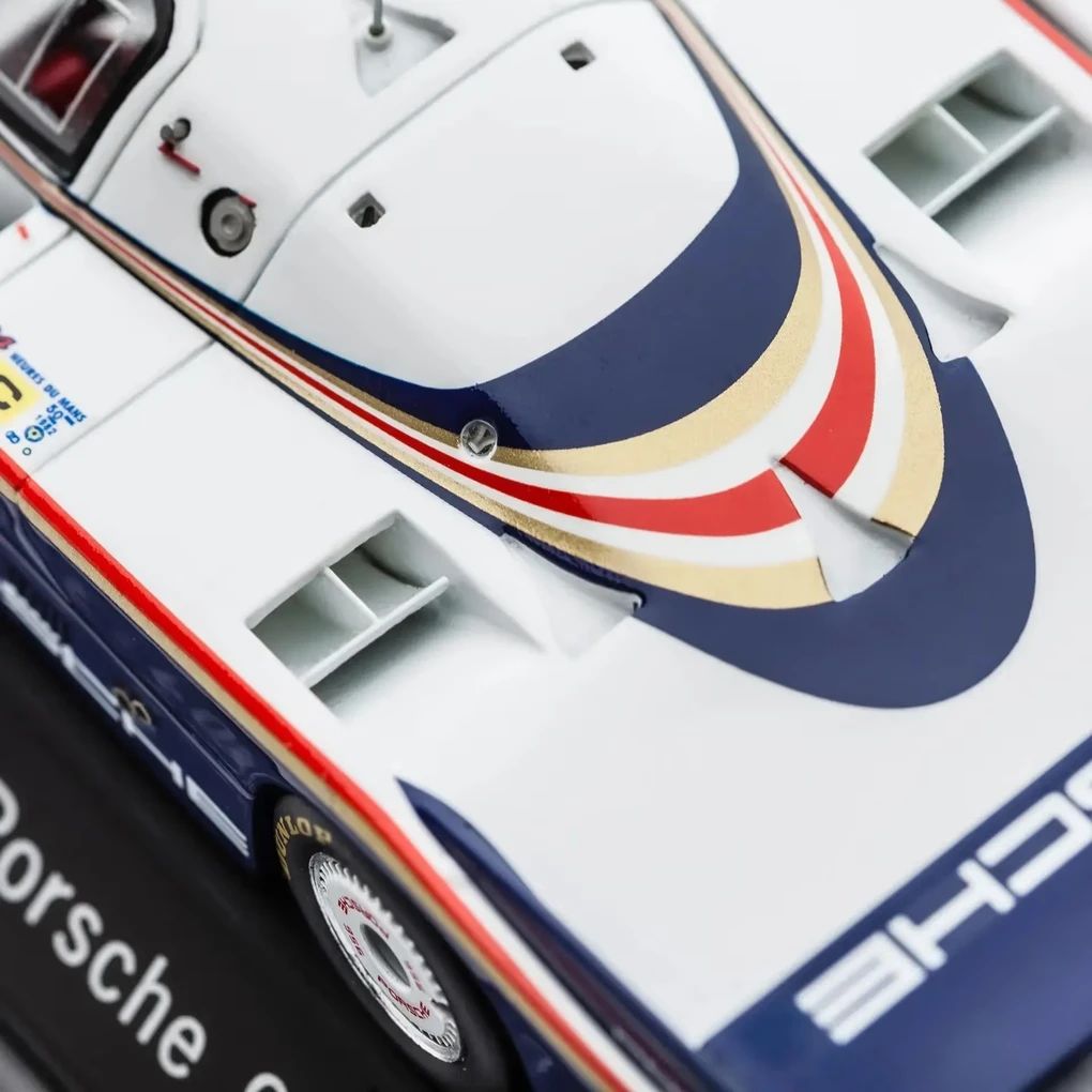 Das hochwertige, detaillierte Sammlermodell des Porsche 956 ist im Regal oder auf dem Schreibtisch ein echter Blickfang. Durch die mitgelieferte Geschenkverpackung eignet es sich hervorragend als kleine, aber eindrucksvolle Aufmerksamkeit. Für die Langstreckenweltmeisterschaft 1982 entwirft Porsche den 956. Eine neue Rennwagengeneration mit zukunftsweisender Technologie, wie einem verbrauchsarmen 2,6 Liter Turbo Motor und einem vollsynchronisierten Fünfgang-Getriebe. Das neue Reglement der Gruppe C schreibt ein bestimmtes Verhältnis von Gesamtlänge zu Radstand vor, um zu große Langheck-Konstruktionen zu vermeiden. So hat der 956 mit 265 cm den längsten Radstand im Vergleich zu allen bislang dagewesenen Porsche Rennwagen. Erstmals entwickelt Porsche ein Monocoque-Chassis aus Aluminiumblech. Mit dem 956 entsteht ein Fahrzeug mit überzeugenden aerodynamischen Eigenschaften – dabei beeinflusst ein technisches Detail den Erfolg dieses Typs maßgeblich: Ein Diffusor am Unterboden des Rennwagens erzeugt einen Unterdruck, der den 956 an den Boden saugt. Der so erzielte Abtrieb ermöglicht sehr hohe Kurvengeschwindigkeiten im Rennen und verleiht Porsche einen entscheidenden Vorsprung.