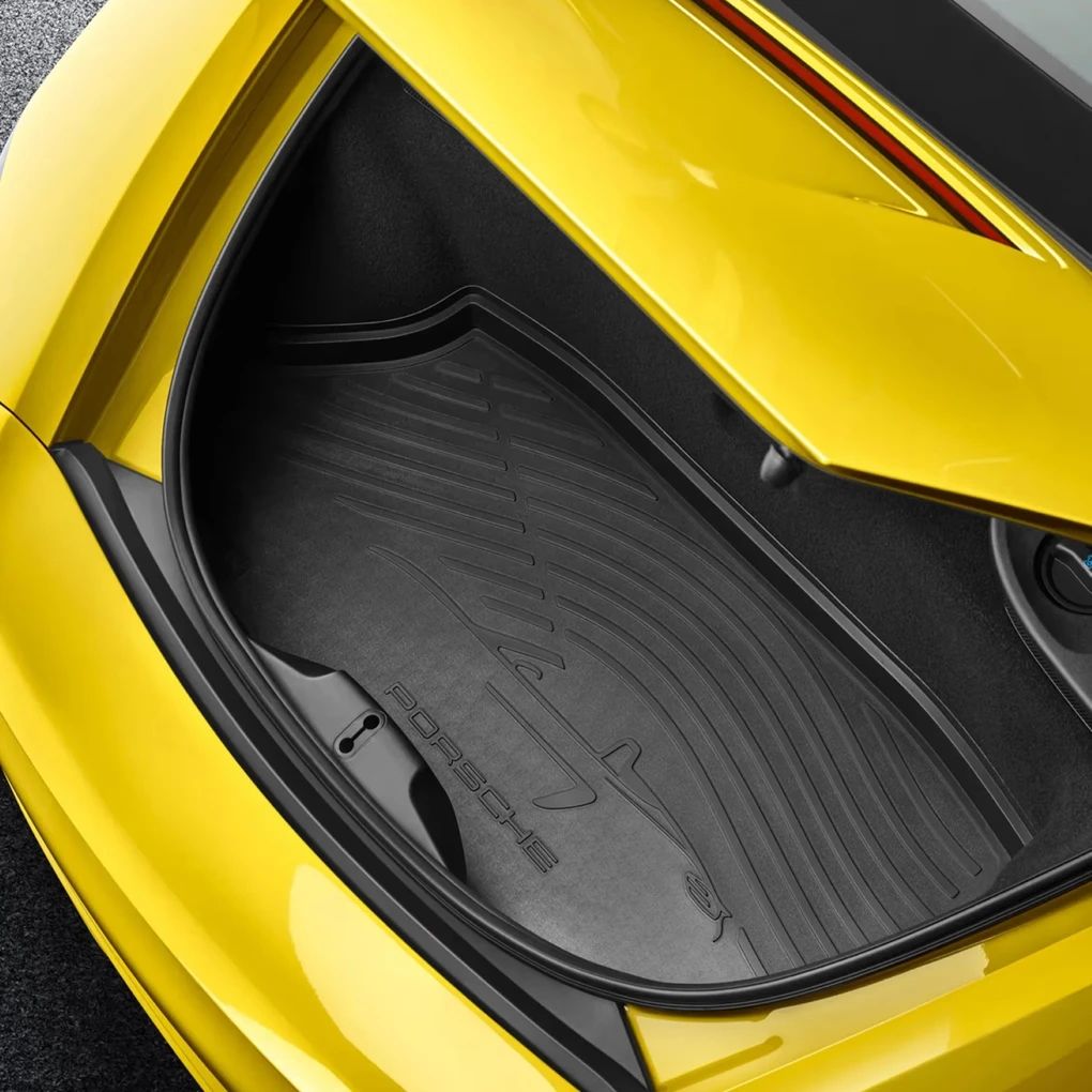 Die passgenaue Kofferraumwanne für den 718 Boxster (982) bietet langlebigen Schutz vor Nässe, Schmutz und Abnutzung. Sie besteht aus wasserundurchlässigem Material, ist leicht zu reinigen und bildet die Silhouette des Fahrzeugs ab. Mit Griffen versehen.