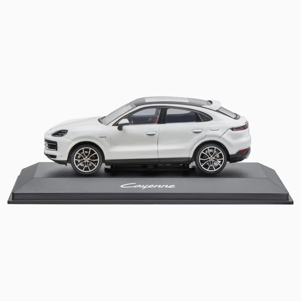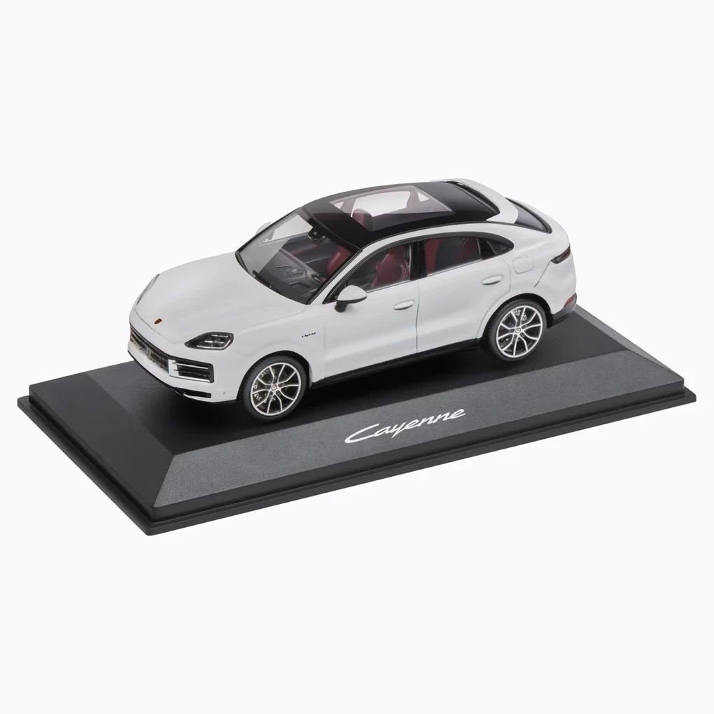Das exklusive Modell des Porsche Cayenne E-Hybrid Coupé (E3 II) im Maßstab 1:43 überzeugt mit seiner Detailtreue und darf in keiner Sammlung fehlen. Die mitgelieferte Verpackung macht es außerdem zum perfekten Geschenk für alle Porsche-Fans. Exterieur in Carraraweißmetallic, Interieur in Schwarz/Bordeauxrot.
