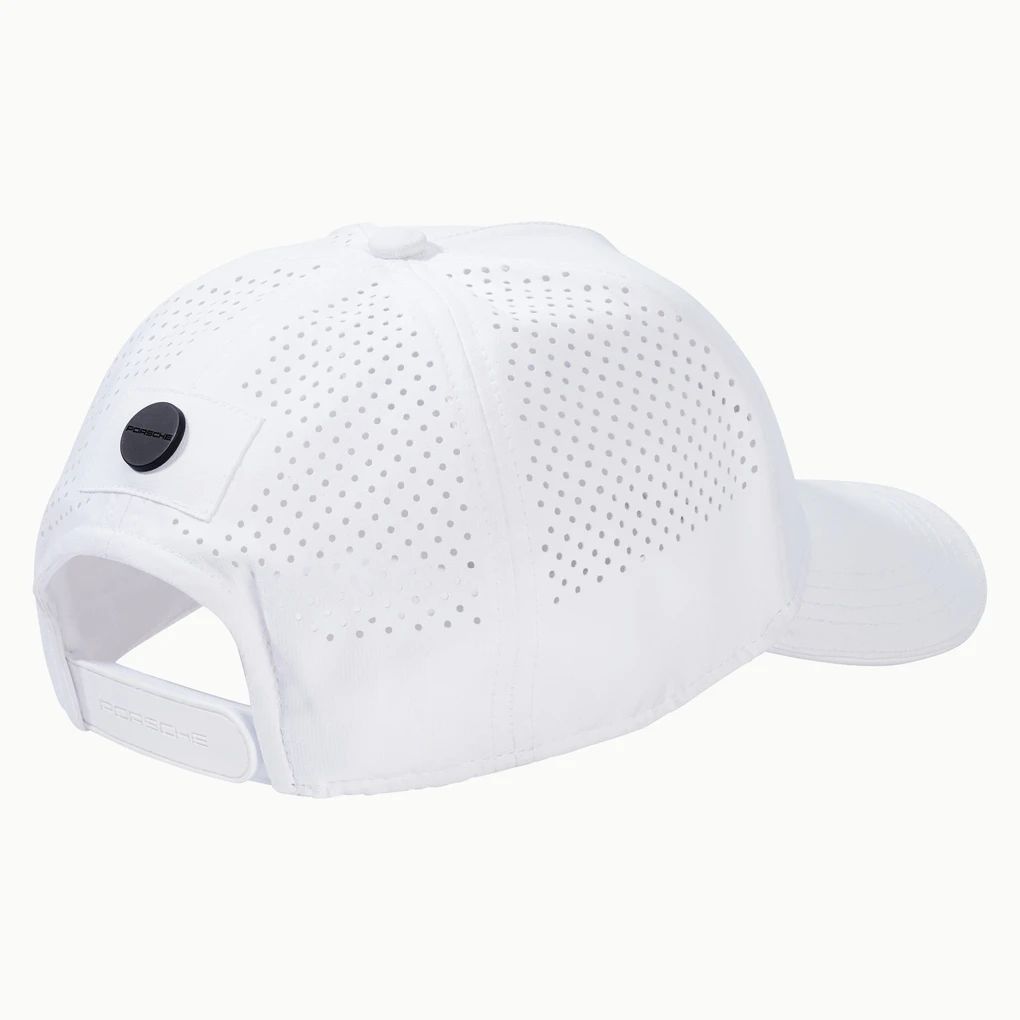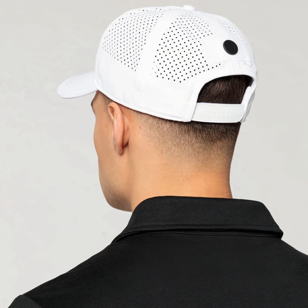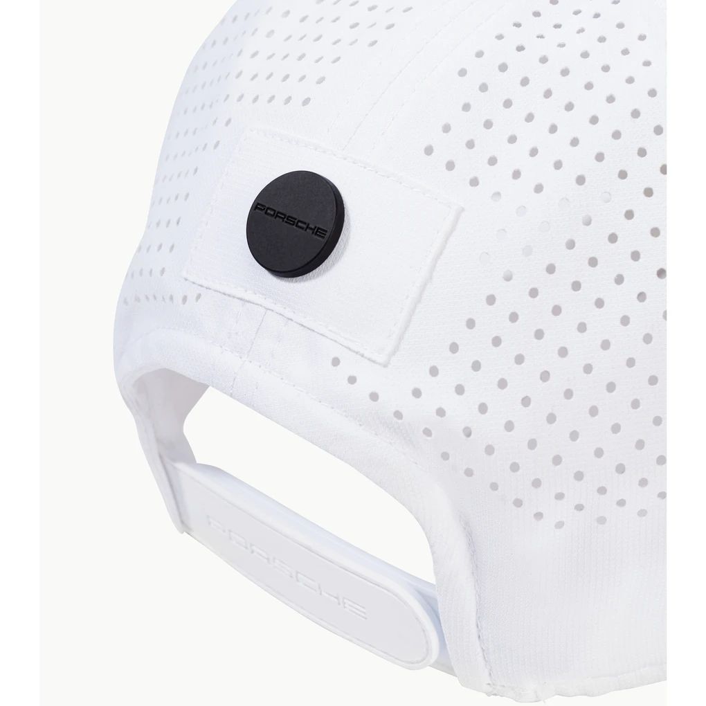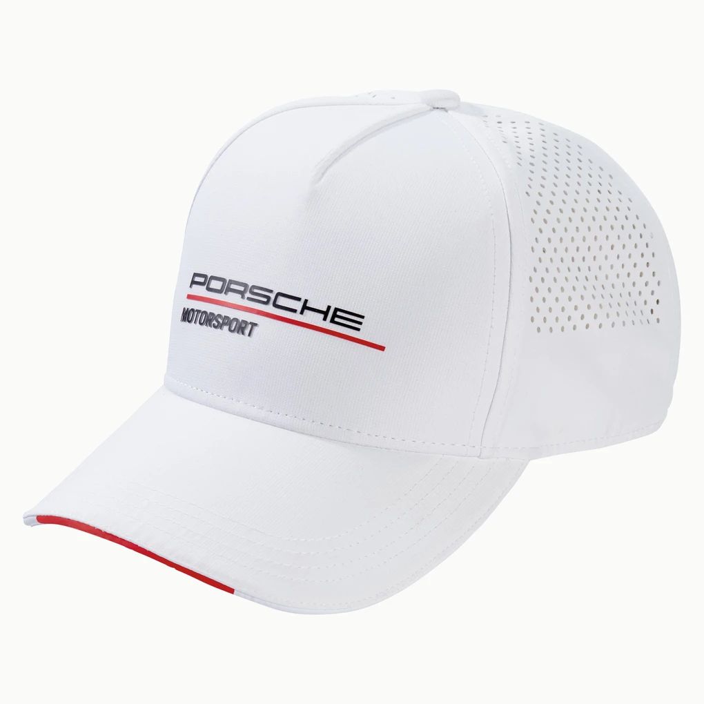 Perforierte 5-Panel-Baseball-Cap mit Snapback-Verschluss und „ PORSCHE MOTORSPORT“ Signet. Hinten befindet sich mittig ein Knopf mit „ PORSCHE“ Schriftzug.