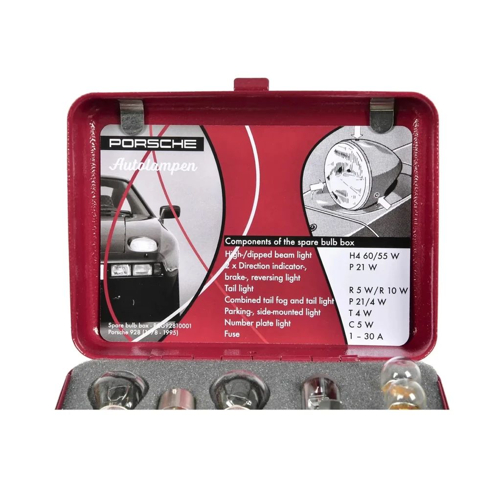 Set aus Glühlampen und Sicherungen (12 Volt), speziell für den Porsche 928 zusammengestellt.