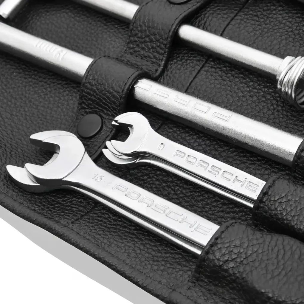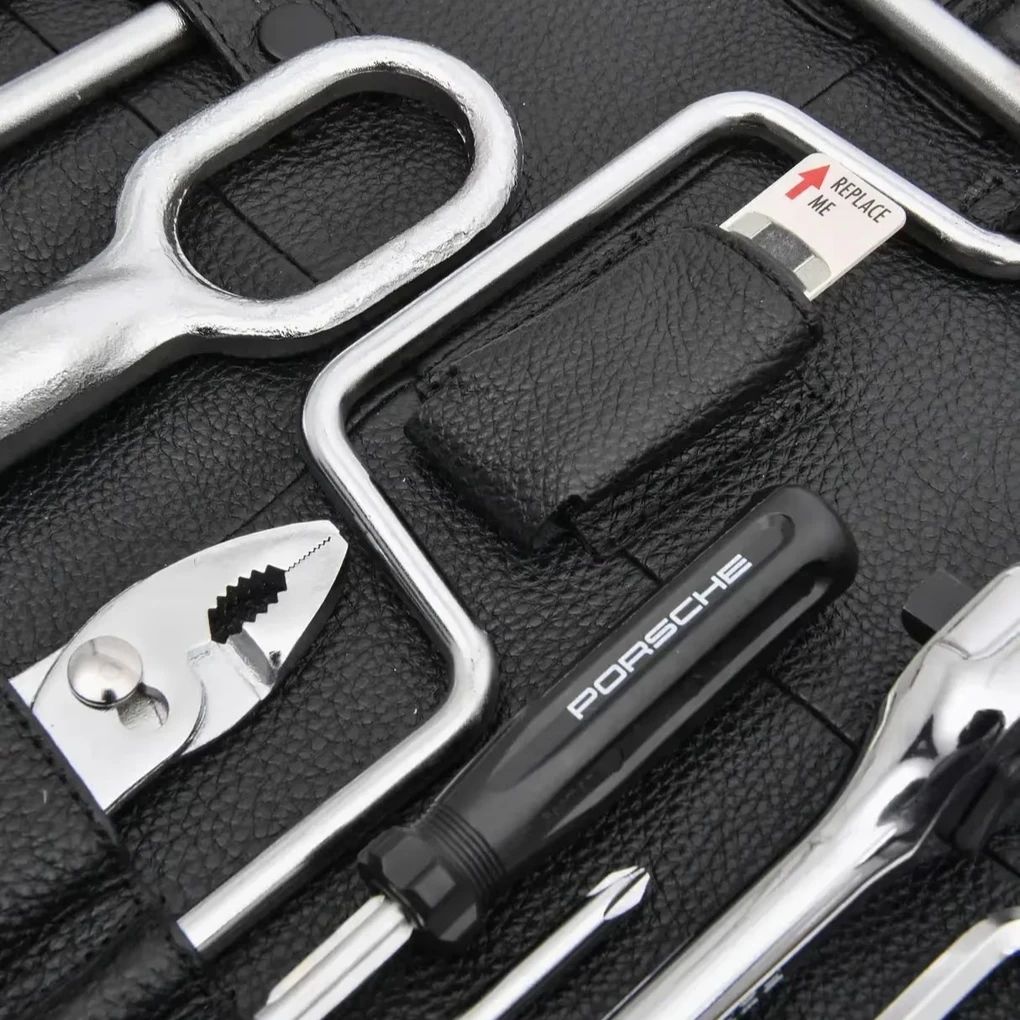 Durch die exakte Rekonstruktion der Werkzeuge von damals in Größe und Form können die Werkzeuge sowohl im originalen Werkzeugbrett im Kofferraum des Porsche 928 untergebracht oder stilecht in der Werkzeugtasche mitgeführt werden.