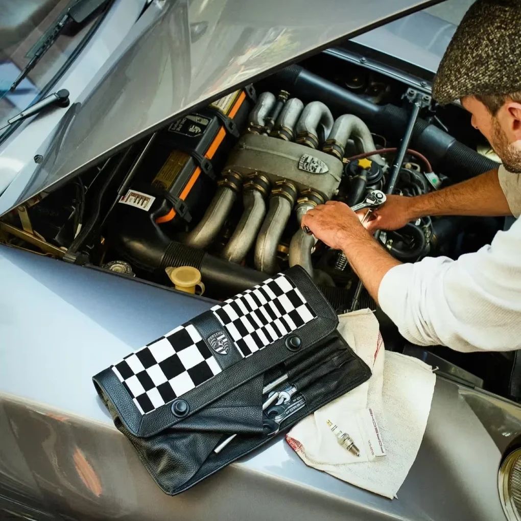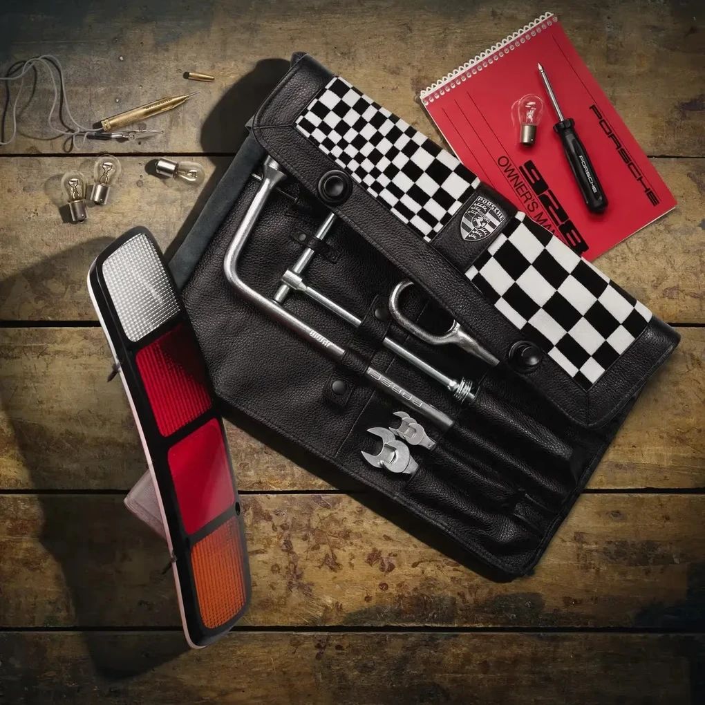 Der Inhalt wurde anhand der originalen Werkzeugtasche rekonstruiert und mit Hilfe der technischen Zeichnungen der Werkzeuge beim Original-Lieferanten von damals neu aufgelegt. Im letzten Schritt wurde die Tasche von den Experten von Porsche Classic optisch und technisch aufgewertet sowie um nützliche Werkzeuge erweitert.