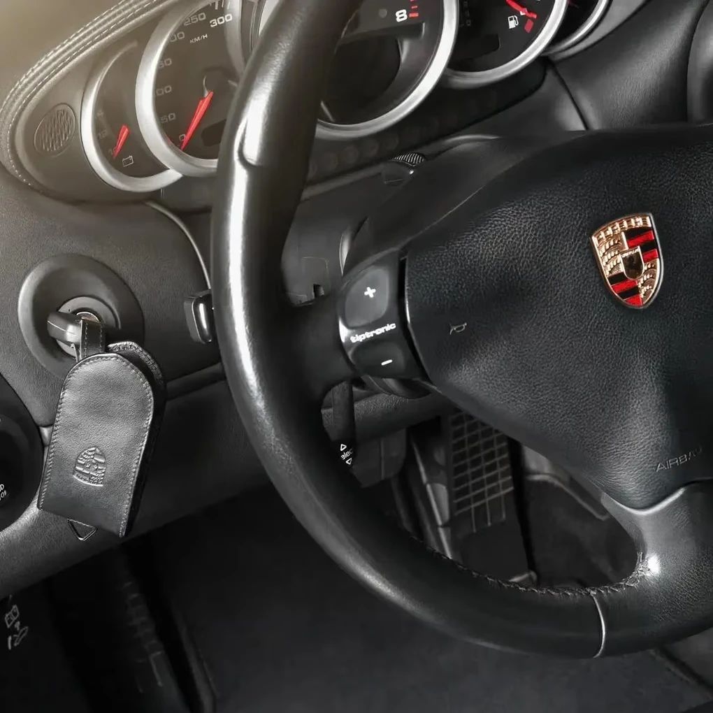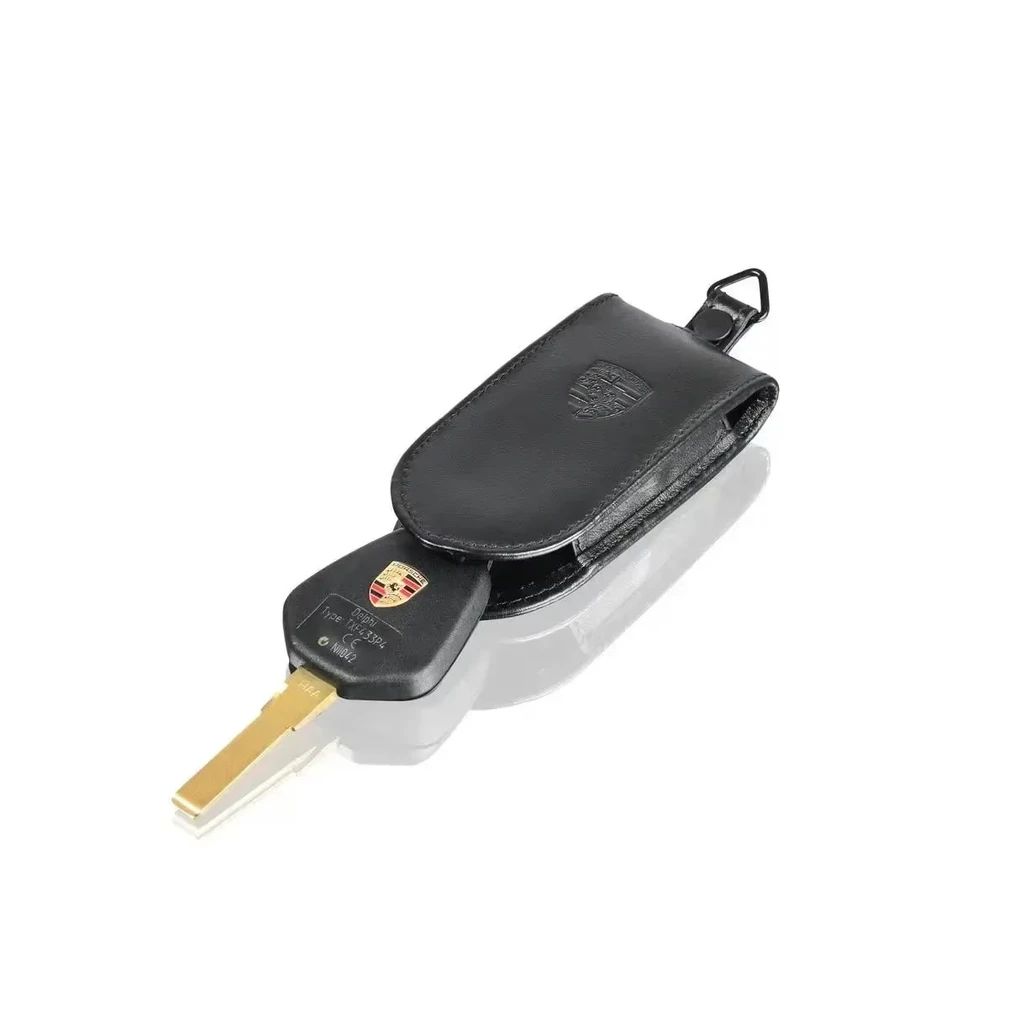 Lederetui für Fahrzeugschlüssel, schwarz; verwendbar für Porsche Boxster (986) und 911 (996) der Modelljahre 1997 bis 2005.