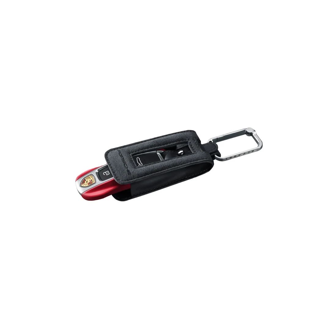 Aus schwarzem Alcantara®. Der Lascheneinzug und die Seitenwangen sind in Leder schwarz gehalten. Mit Ziernaht in ausgewählten Farben und mit Porsche Wappen.