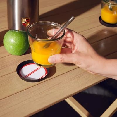 Das Car-Coaster-Set besteht aus zwei Einlegern für den Porsche Getränkehalter. Sie sind in vier ausgewählten Designs verfügbar.