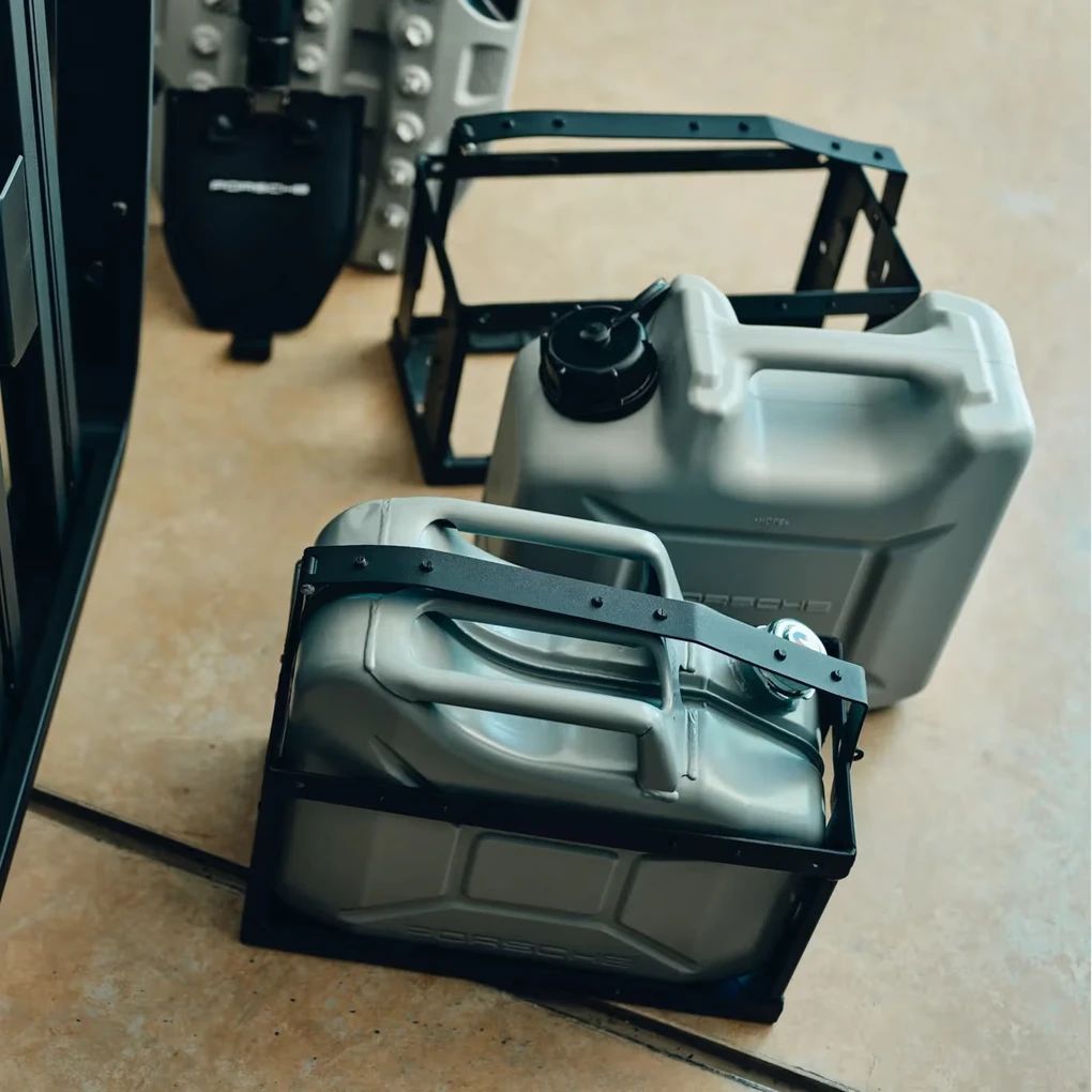 Kanisterhalterung zur Anbringung am Dachkorb.