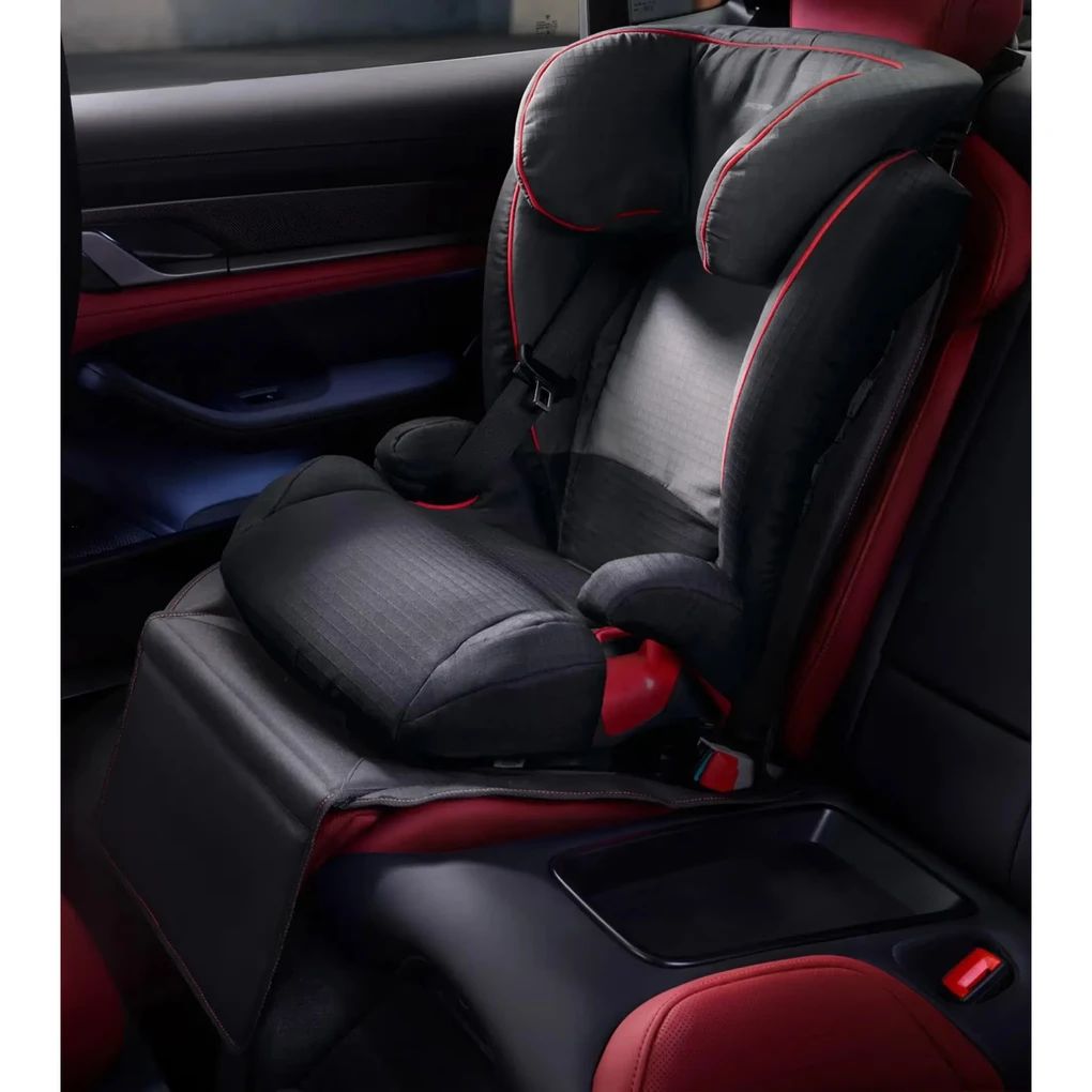Robuste Unterlage zum Schutz vor Verschmutzungen und Beschädigungen des Fahrzeugsitzes (Sitzfläche und Rückenlehne). Mit „PORSCHE“ Schriftzug und Ziernaht in Rot. Verwendbar mit allen Porsche Kindersitzen, auch in Verbindung mit ISOFIX-Anbindung.
