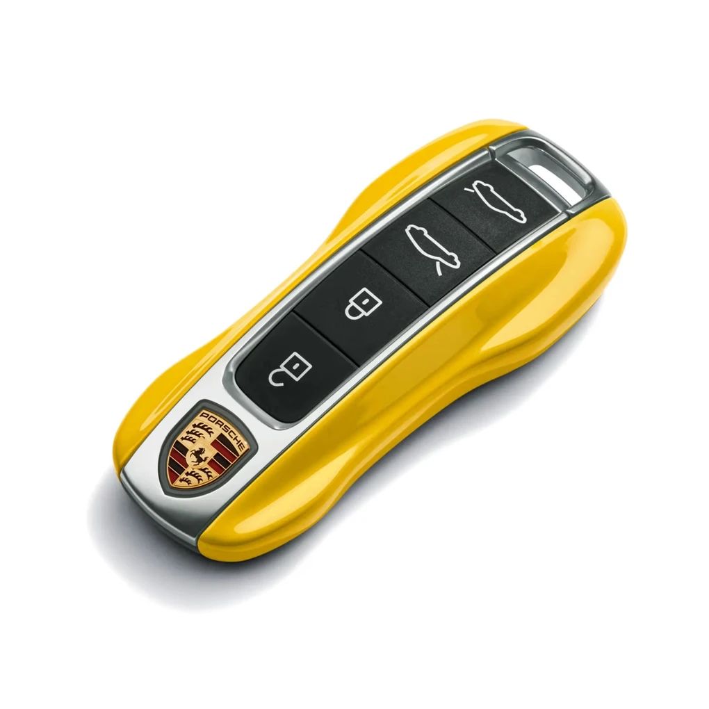 Die lackierten Seitenwangen in ausgewählten Exterieurfarben sind die perfekte Ergänzung für Ihren Porsche Fahrzeugschlüssel.