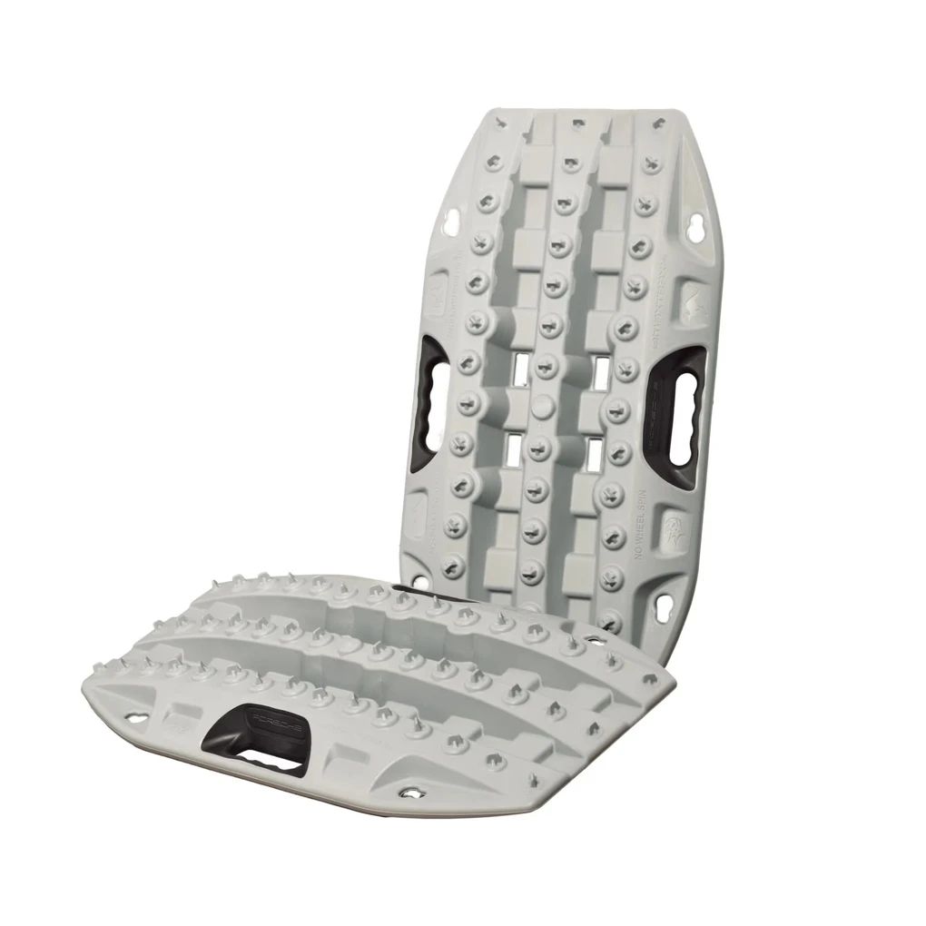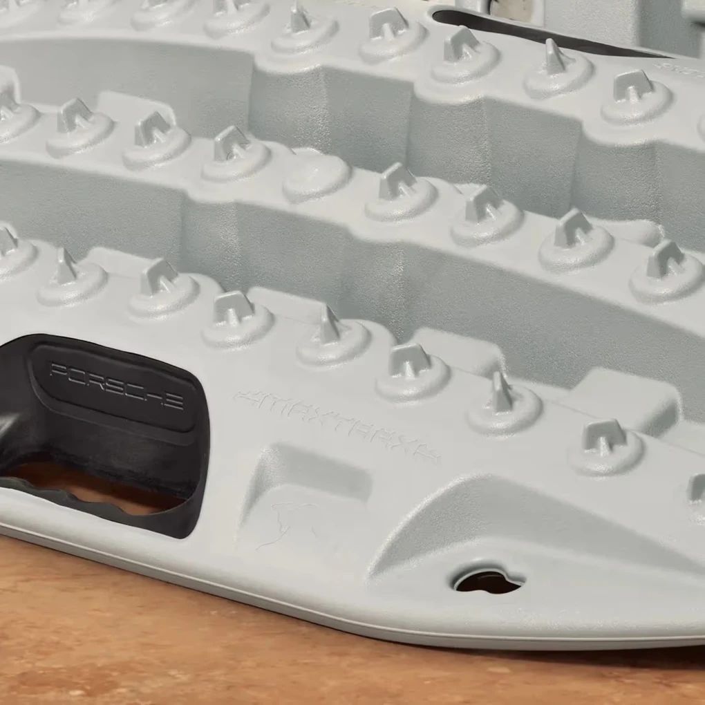 Die 3,4 kg leichten, grauen Bergeboards mit „PORSCHE“ Schriftzug sind extra dick, formstabil und mit Noppen auf der Oberseite versehen. An ihnen finden die Reifen perfekten Halt. Der verwendete Kunststoff ist äußerst strapazierfähig, UV-resistent und leicht zu reinigen. Geformte Handgriffe an beiden Längsseiten erleichtern den professionellen Einsatz.