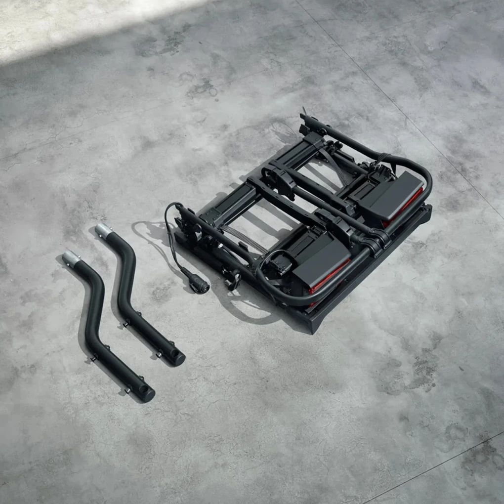 Abschließbarer, klappbarer Aluminium-Heckträger in Schwarz für bis zu 2 Fahrräder (maximales Gewicht pro Fahrrad: 30 kg). Die schnelle und werkzeuglose Montage erfolgt auf der Anhängezugvorrichtung. Der Abklappmechanismus ermöglicht auch mit montiertem, beladenem Fahrradheckträger das vollständige Öffnen der Heckklappe. Der Fahrradheckträger lässt sich platzsparend zusammenlegen und dank der integrierten Tragegriffe komfortabel transportieren.