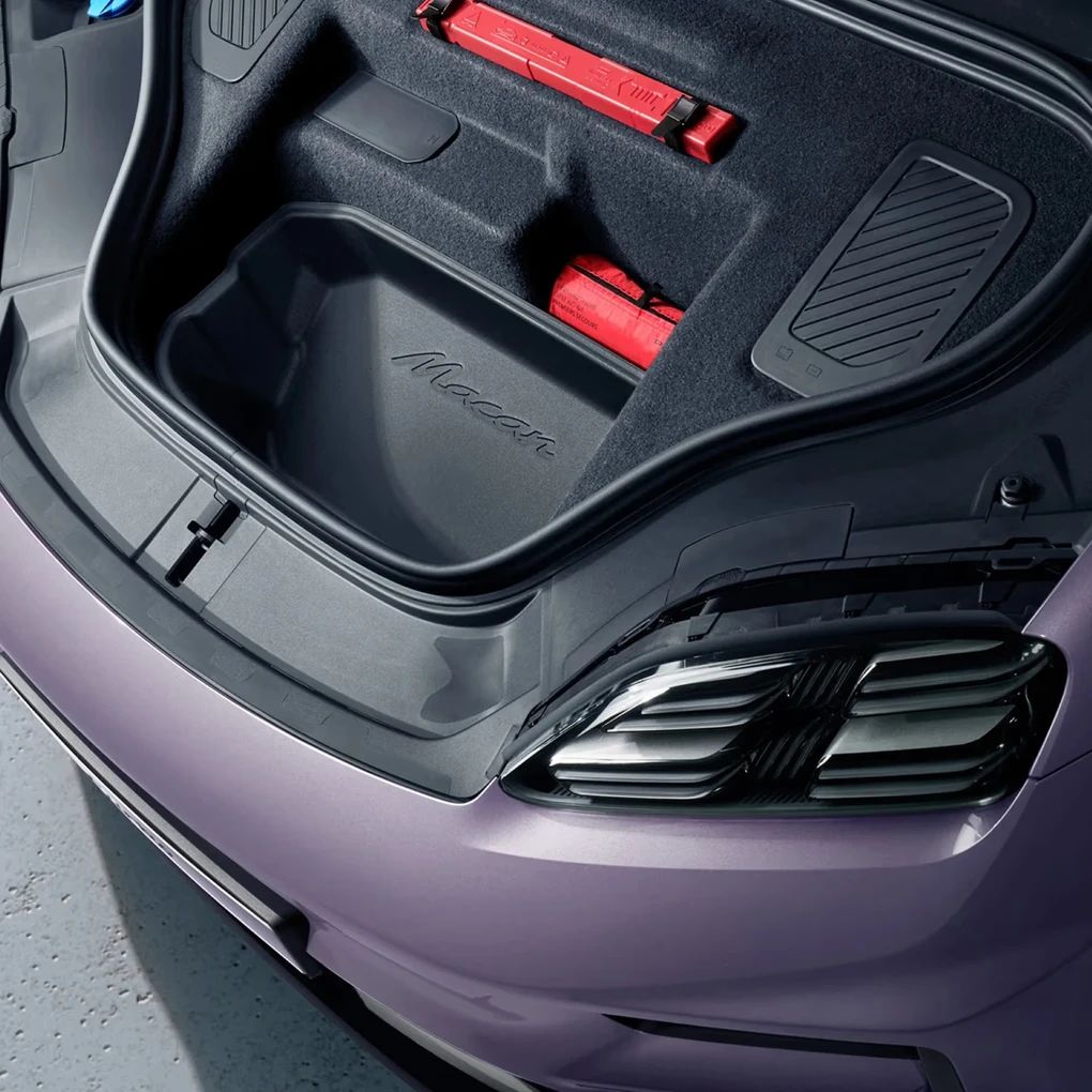 Die maßgeschneiderte Gepäckraumauskleidung für den Macan Electric schützt den vorderen Kofferraum effektiv vor Schmutz, Nässe und Abnutzung. Ein "Macan" Schriftzug ziert die in schwarz gehaltene Schutzwanne, die durch Funktionalität und ansprechendes Design überzeugt. Die tiefe Kofferraumwanne ist aus hochwertigem, wasserdichtem Material gefertigt und lässt sich mit den seitlichen Griffen einfach herausnehmen. So bleibt der Laderaum stets in einwandfreiem Zustand und bereit für alle Abenteuer, die Sie mit Ihrem Macan Electric erleben möchten.