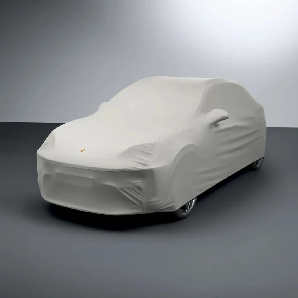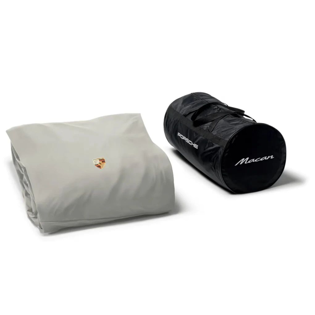 Passgenaue Outdoor-Fahrzeugabdeckung mit farbigem Porsche Wappen: