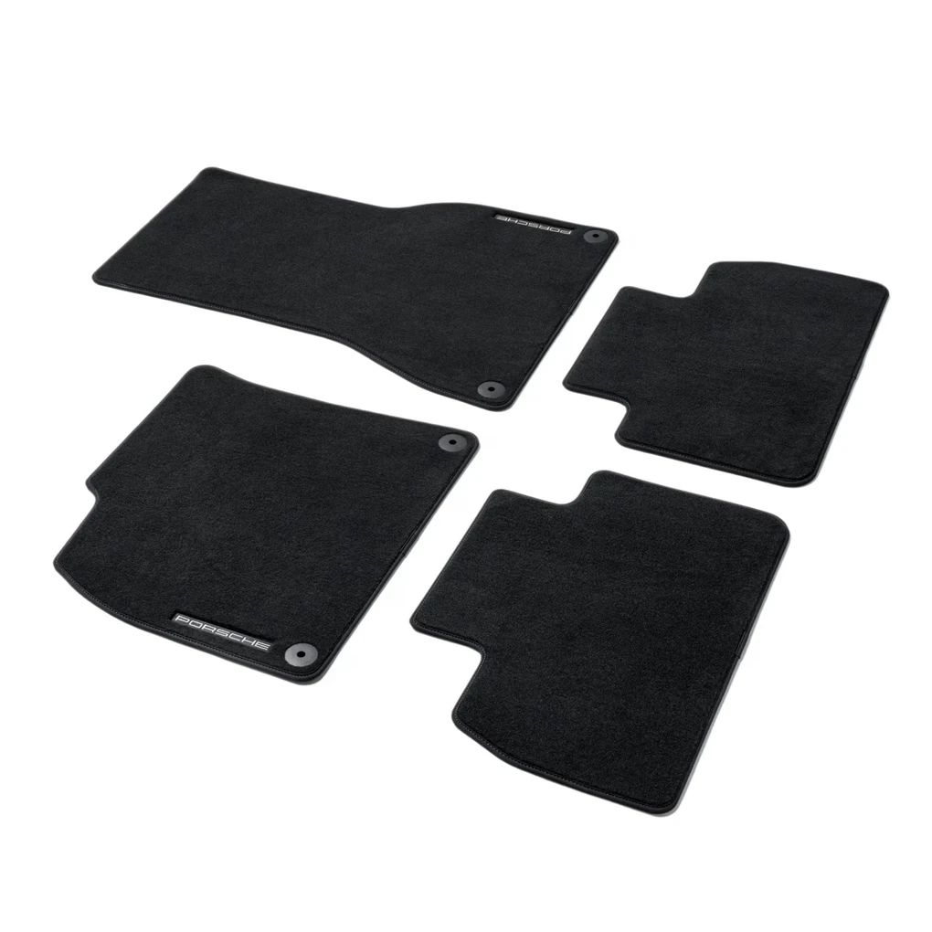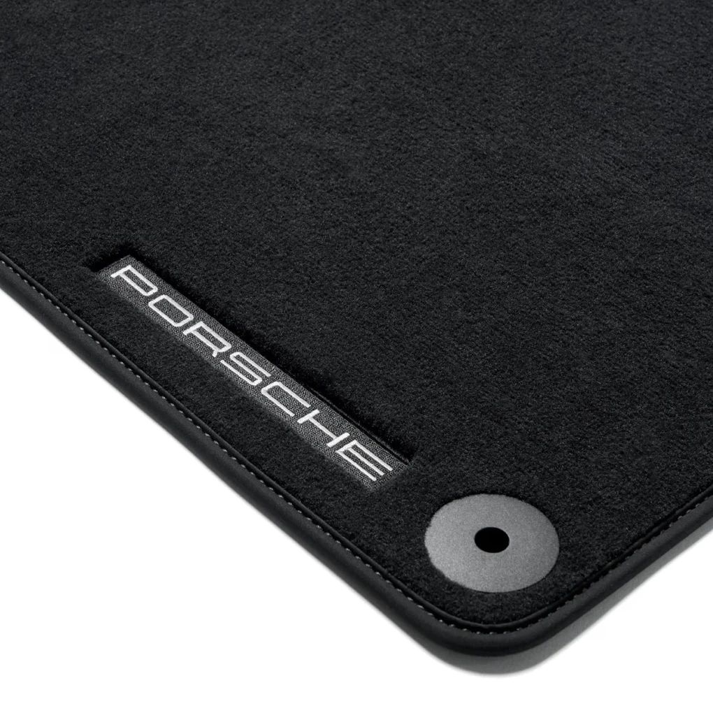 Der maßgeschneiderte Fußmattensatz aus vier Teilen schützt den Innenraum des Macan Electric effektiv vor Verschmutzung und Feuchtigkeit. Die Einfassung aus Nubukleder und der eingestickte, silberne „PORSCHE“ Schriftzug verleiht den Matten eine hochwertige Optik. Die passgenauen schwarzen Fußmatten gewährleisten einen zuverlässigen Schutz der Originalteppiche und lassen für die Reinigung einfach aus dem Fahrzeug nehmen.
