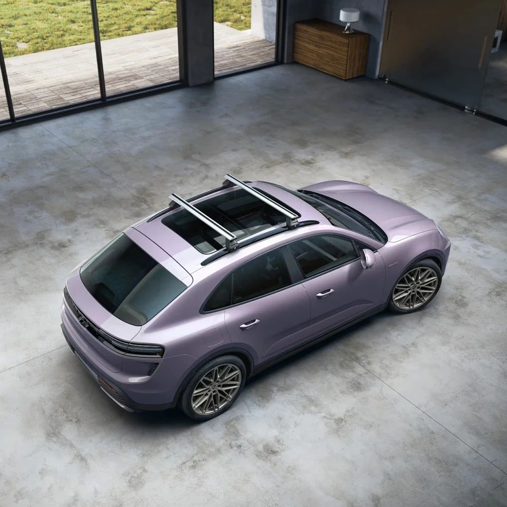 Das Dachtransportsystem für den Macan Electric besteht aus zwei abschließbaren Quertraversen aus leichtem Aluminium. Sie werden formschlüssig und sicher in den seitlichen Dachkanälen des Fahrzeugs verankert. Dank der soliden Bauweise sind Belastungen bis 75 kg möglich. Der Basisträger ermöglicht die flexible Montage von Dachboxen, Fahrrad-, Ski- oder Snowboardhaltern auf dem Macan Electric. So lassen sich problemlos größere Gepäckstücke und sperrige Sportausrüstung transportieren, ohne auf Komfort und Fahrspaß verzichten zu müssen.
