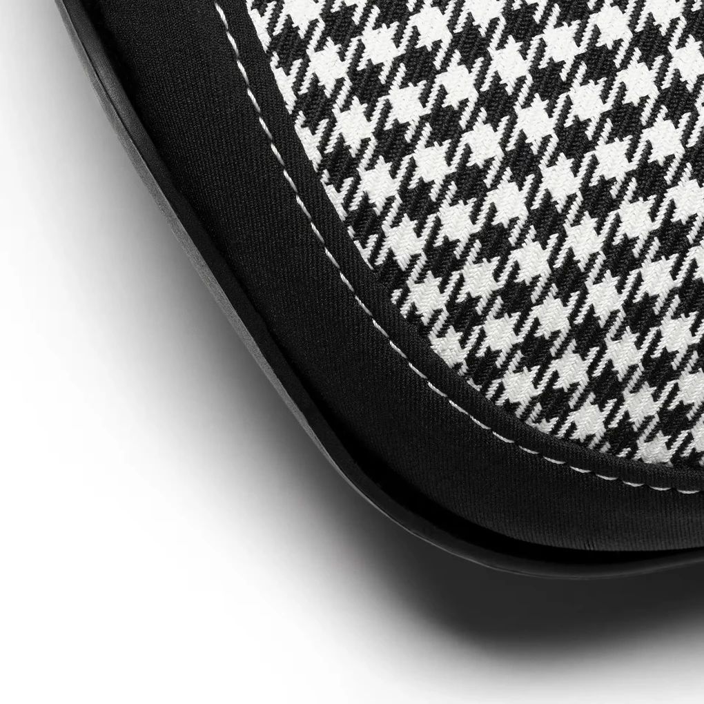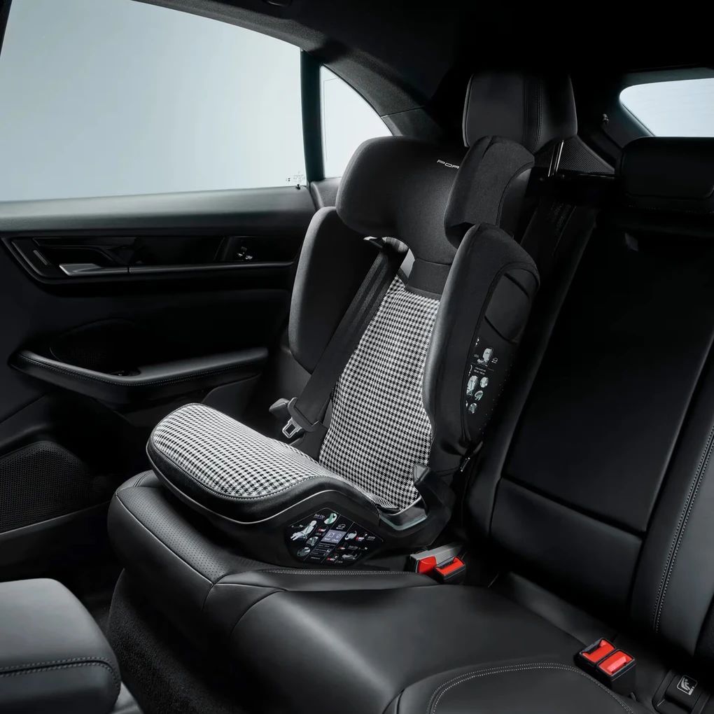 Der Kindersitzbezug in Pepita wurde für den Junior Seat i-Size (971044053) so gestaltet, dass analog zum Sitz im 911 Sport Classic jeweils die Sitzmitte mit Pepita ausgestattet ist, die Seitenwangen in klassischem Schwarz - um sich harmonisch in möglichst viele Interieur-Konzepte einzufügen. Alle Modelle wurden mit „PORSCHE" Schriftzug auf dem Kopfteil versehen. Darüber hinaus wurde der Bezug für den Junior Seat mit einer weißen Ziernaht um die Mittelbahn veredelt.