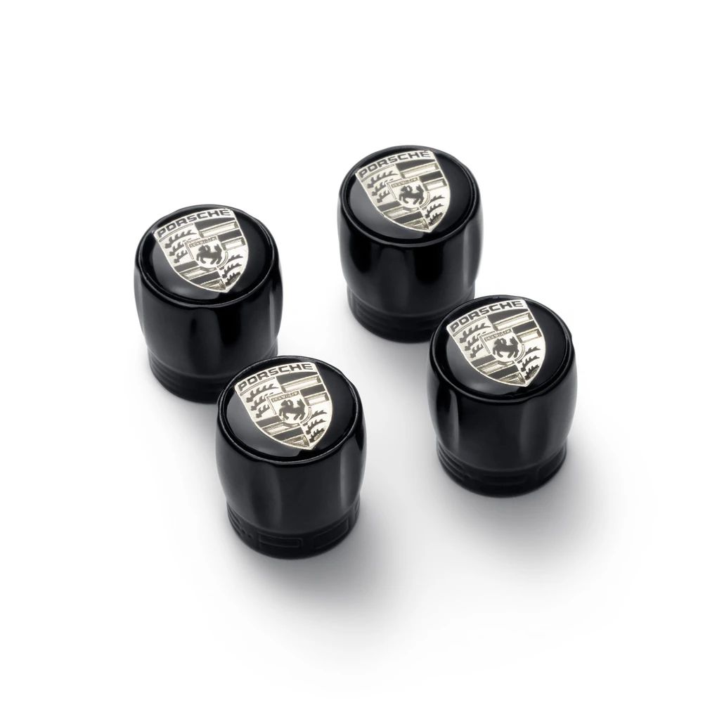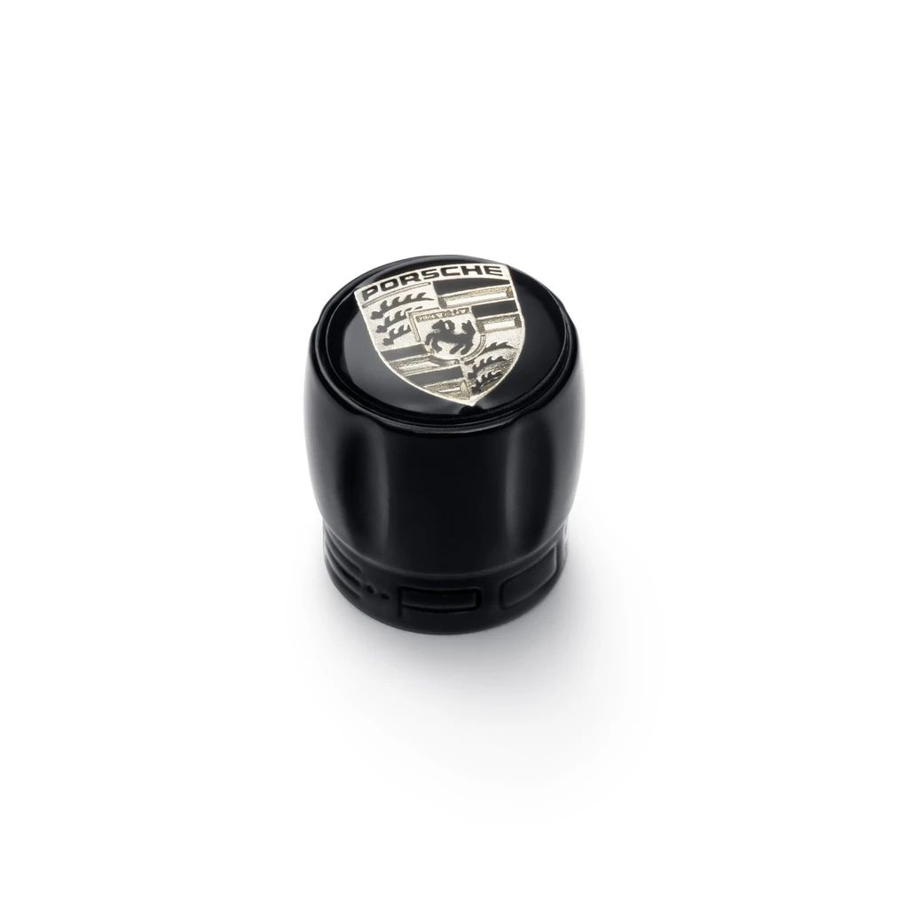 In Schwarz mit monochromem Porsche Wappen.