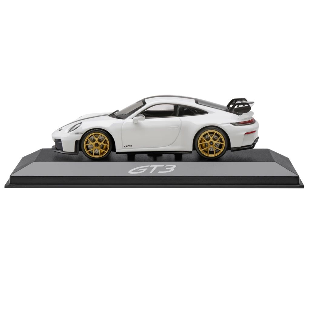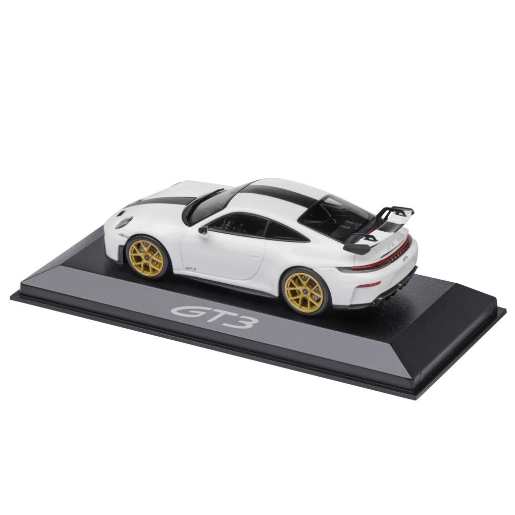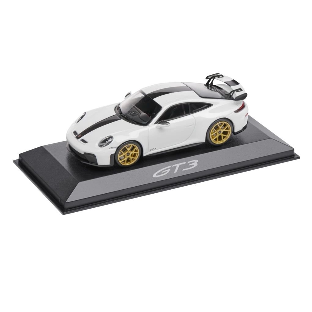 Das exklusive Modell des Porsche 911 GT3 992.2 im Maßstab 1:43 überzeugt mit seiner Detailtreue und darf in keiner Sammlung fehlen. Die mitgelieferte Verpackung macht es auch zum perfekten Geschenk für alle Porsche Fans. Besteht aus DieCast. Exterieur in Weiß, Interieur in Schwarz.