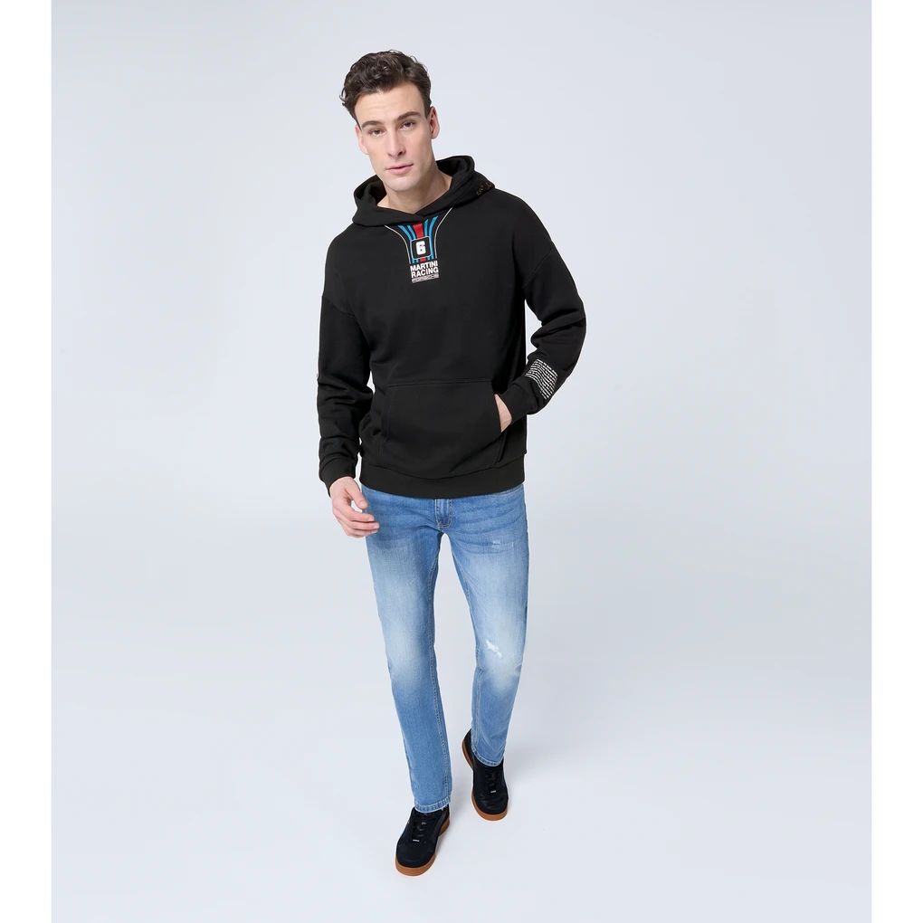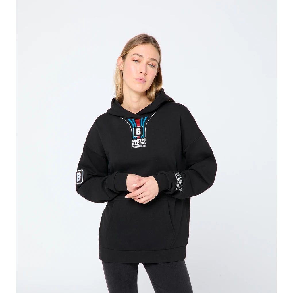 Rennsport-Style in Perfektion. Der Unisex-Hoodie aus der MARTINI RACING® Kollektion vereint sportliche Eleganz mit legendärem Motorsport-Design. Inspiriert vom legendären Porsche 936 Spyder, setzt er mit markanten Motorsport-Elementen besondere Akzente: Der MARTINI RACING® Print unterhalb des Halslochs und das dezente Detail am Ärmel greifen die legendäre Rennsport-Historie auf.Ein tonaler Rückenprint sorgt für eine dynamische Optik, während die hochwertige 936 Spyder Stickerei auf der Kapuze und das Nr. 6-Badge am Ärmel den Look perfekt abrunden.