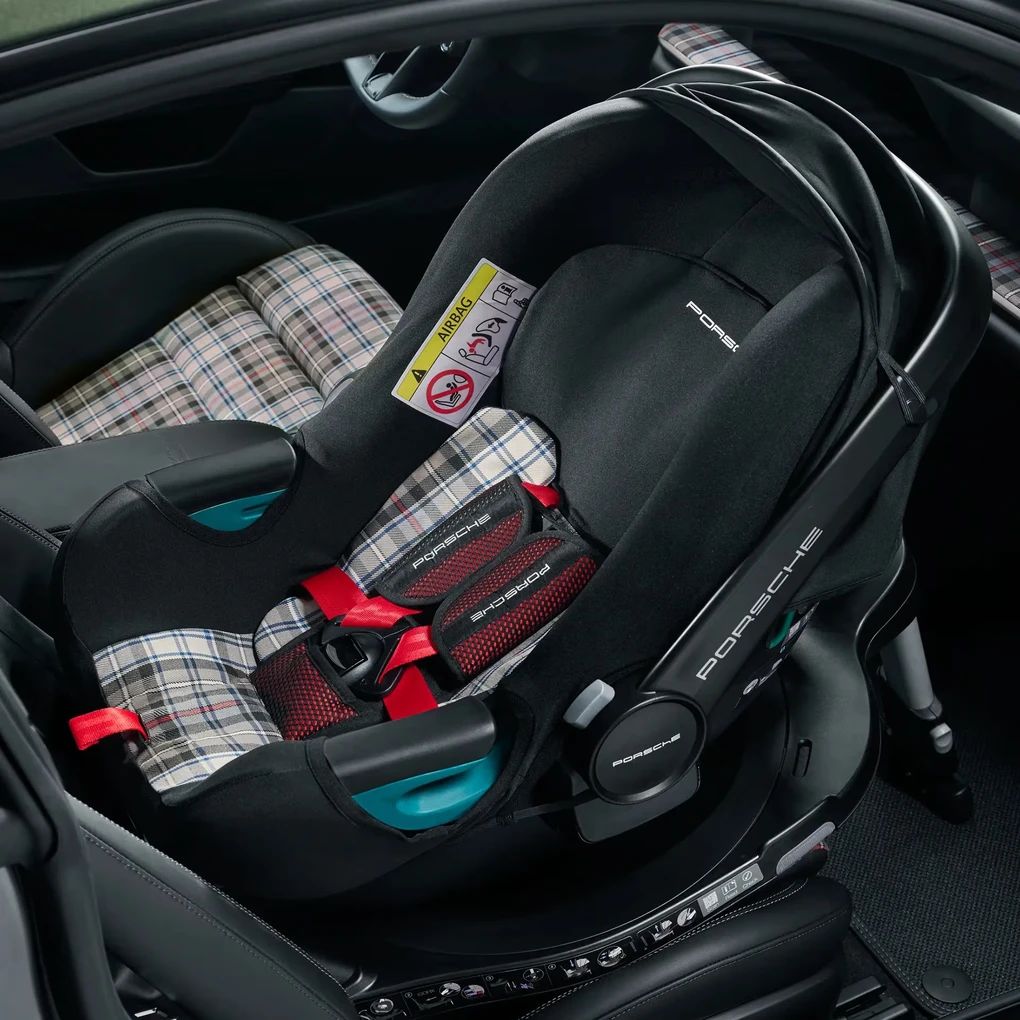 Bei der Stoffwahl für den Kindersitzbezug kommt das originale Schottenkaro-Stoffmuster zum Einsatz, das auch im 911 Turbo 50 Jahre Jubiläumsmodell Verwendung findet. Hier trifft Tradition auf Moderne: für das ikonische Schottenkaro wurde das „Mackenzie“-Muster des Serienmodells von 1974 neu interpretiert und referenziert auf die Eleganz und den Lifestyle der 911 Turbo Historie. Damit sind auch die kleinsten Mitfahrer stilsicher unterwegs.