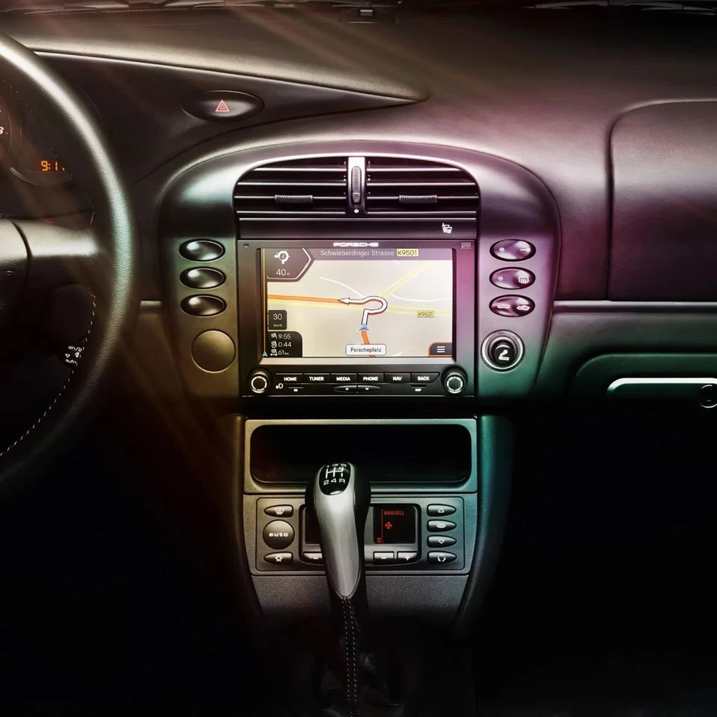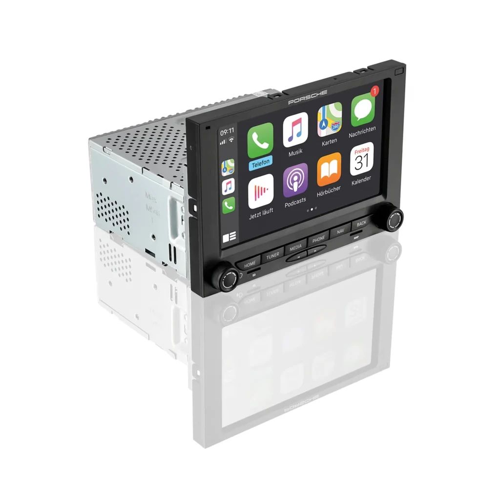 Mit seiner einzigartigen, originalen Porsche Optik inklusive Porsche Schriftzug fügt sich das PCCM Plus nahtlos in das Interieur ein. Neben der Bedienung über einen hochauflösenden 7-Zoll-Touch-Display mit optimierter Darstellung, betten sich heute moderne Funktionen wie DAB+ (Europa), Apple CarPlay und GOOGLE® Android Auto in das PCCM Plus ein. Darüber hinaus verfügt das PCCM Plus über eine zusätzliche Onboard-Navigation mit Porsche spezifischen Points of Interest (POI). Die Routenführung erfolgt in 2D- oder 3D-Darstellung. Das dazugehörige Kartenmaterial wird über eine separate SD-Karte bereitgestellt.