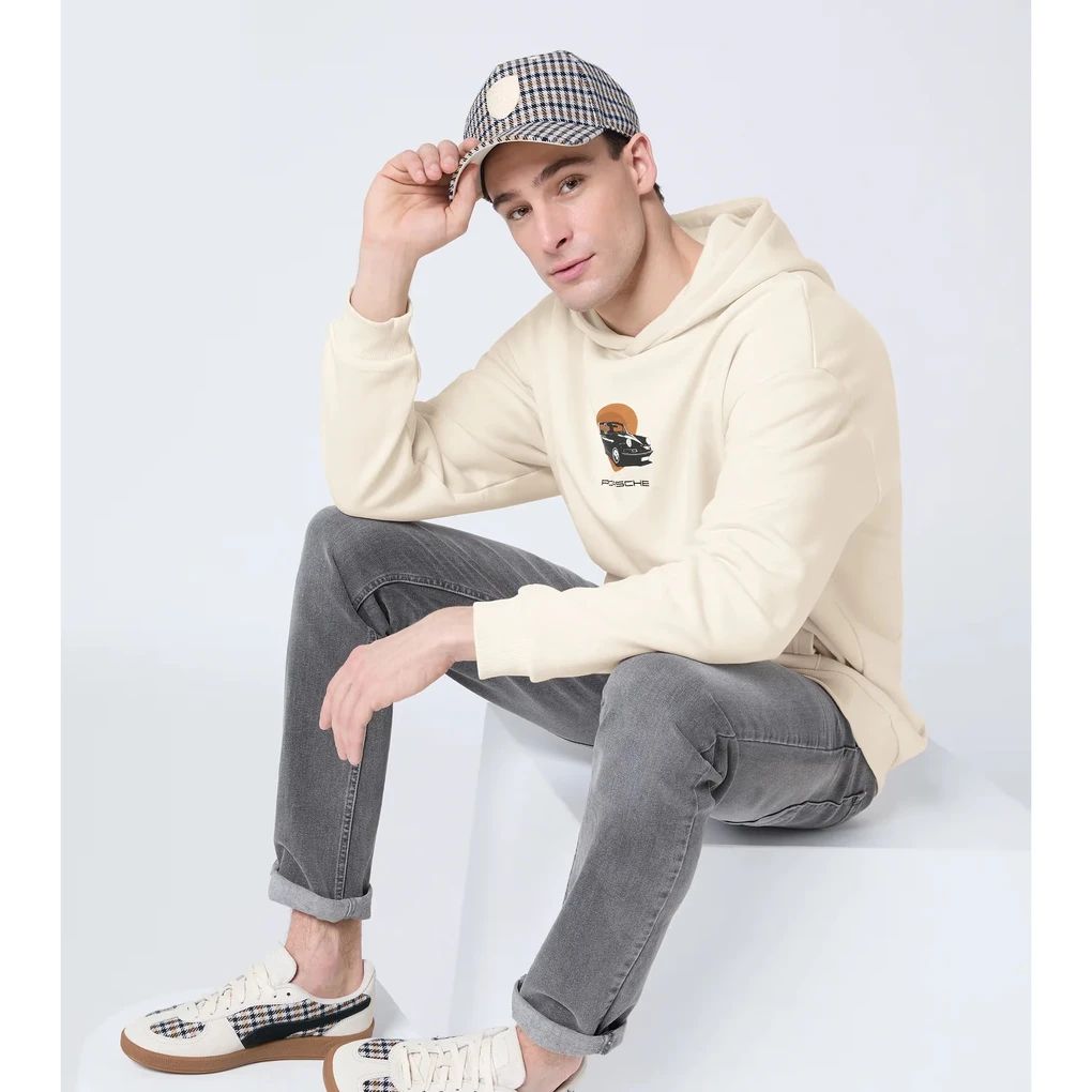 Zeitlos, ikonisch, mit Blick fürs Detail – die Porsche 911 Targa 60Y Capsule Kollektion vereint Retro-Charme mit zeitlosem Design als Hommage an das 60-jährige Jubiläum des Sportwagens. Die Capsule greift historische Elemente der ersten Porsche 911 Targa Generation auf und interpretiert sie in ausgewählten Key-Pieces neu.Der Hoodie aus hochwertiger Baumwolle in markanter Heavy-Qualität ist ein Must-have für Targa-Enthusiasten. Die Rückseite zeigt eine großflächige Illustration der ersten Porsche 911 Targa-Generation – inspiriert von einem historischen Porsche Werbeposter aus dem Jahr 1967. Ergänzt wird das Motiv durch den gestickten originalen Porsche 911 Targa-Modellschrift. Auf der Vorderseite setzen ein kleiner Grafikprint und die gestickte Porsche Wordmark dezente Akzente. Ein Statement-Piece mit hohem Tragekomfort.
