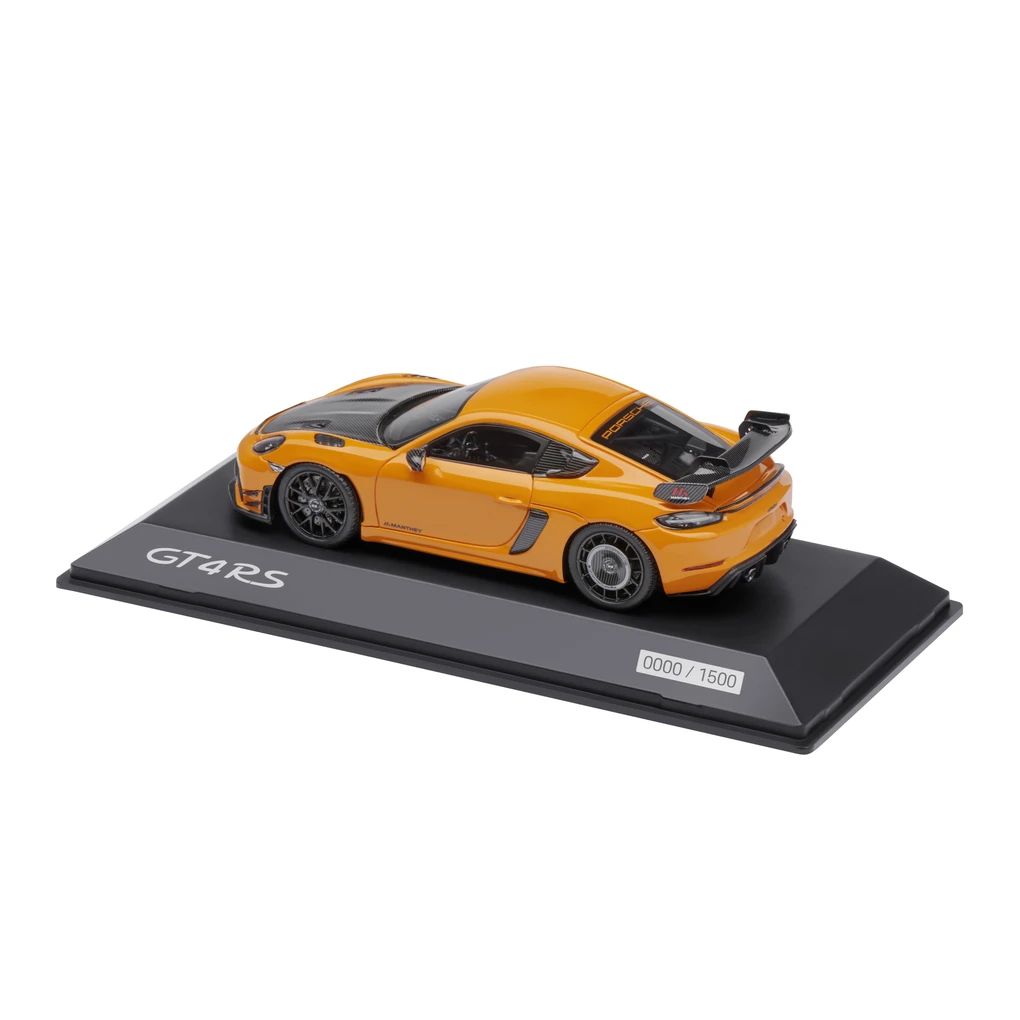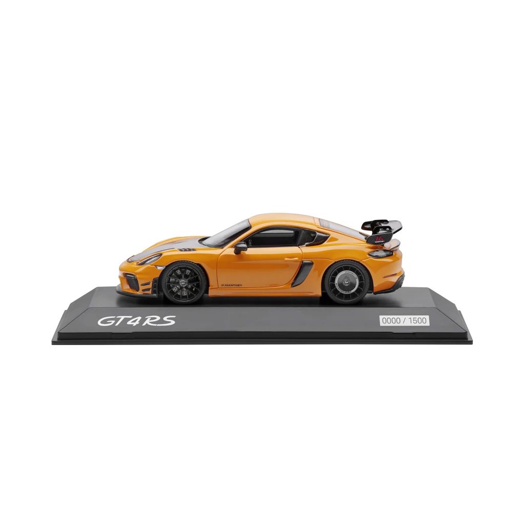 Das exklusive Modell des Porsche 718 Cayman GT4 RS 982 mit Manthey Kit im Maßstab 1:43 überzeugt mit seiner Detailtreue und darf in keiner Sammlung fehlen. Die mitgelieferte Verpackung macht es auch zum perfekten Geschenk für alle Porsche Fans. Besteht aus Resine. Exterieur in Pastel Orange, Interieur in Schwarz. Limitiert auf 1500 Stück.