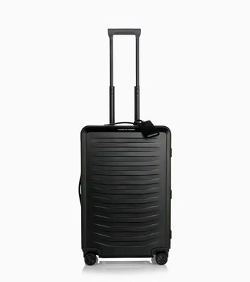 Das Design auf der Vorder- und Rückseite des Trolleys ist inspiriert von der aerodynamischen Form des 911, der mit jedem Reiseabenteuer eine unverwechselbare Patina entwickelt.