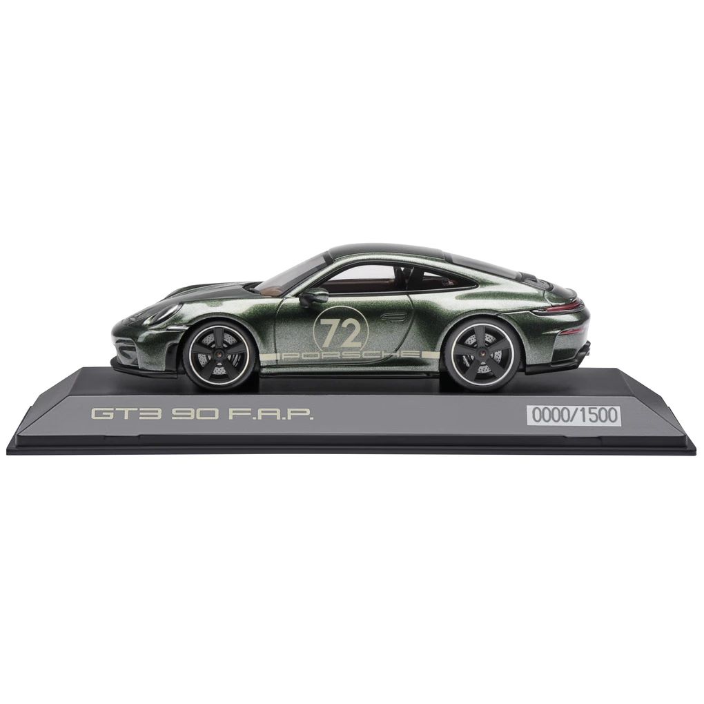 Das exklusive Modell des Porsche 911 GT3 90 F. A. Porsche (992.2) im Maßstab 1:43 in einer Sonderedition zur Feier des 90. Geburtstags von Professor Ferdinand Alexander Porsche überzeugt mit seiner Detailtreue und darf in keiner Sammlung fehlen. Die mitgelieferte Verpackung macht es auch zum perfekten Geschenk für alle Porsche Fans.