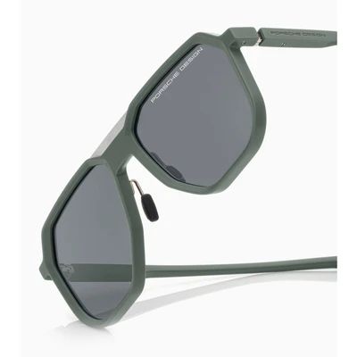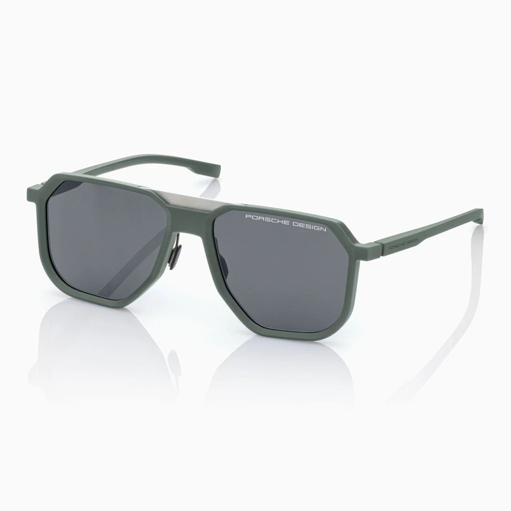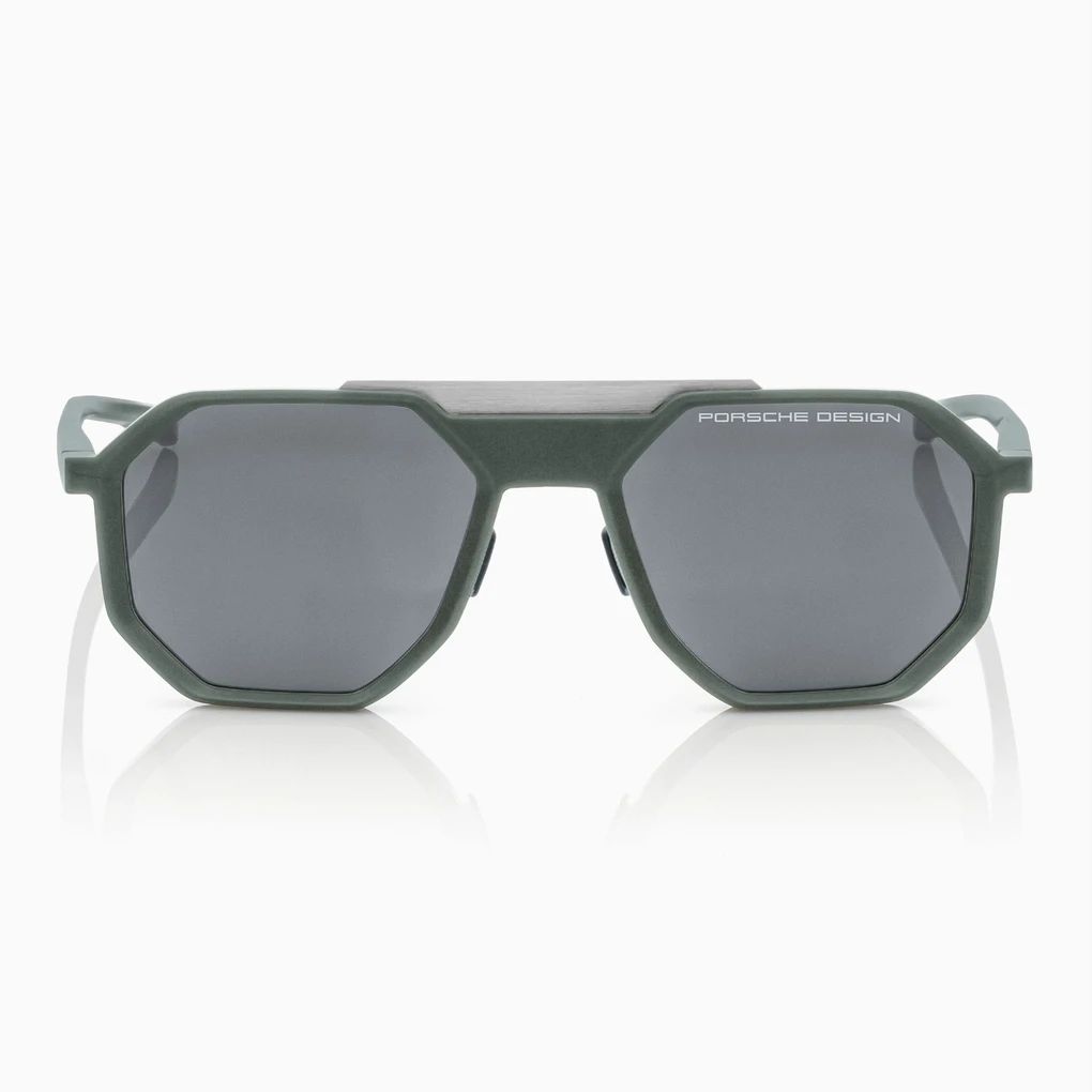 Gerade Linien und scharfe Geometrien verleihen der Sonnenbrille aus der Machined Serie einen technisch-futuristischen Look. Das Hochleistungspolyamid RXP® macht ihre Fassung superleicht und bringt sie gleichzeitig im exklusiven neuen Farbkonzept "Shades of Green" des Porsche Cayenne Electric perfekt zur Geltung.