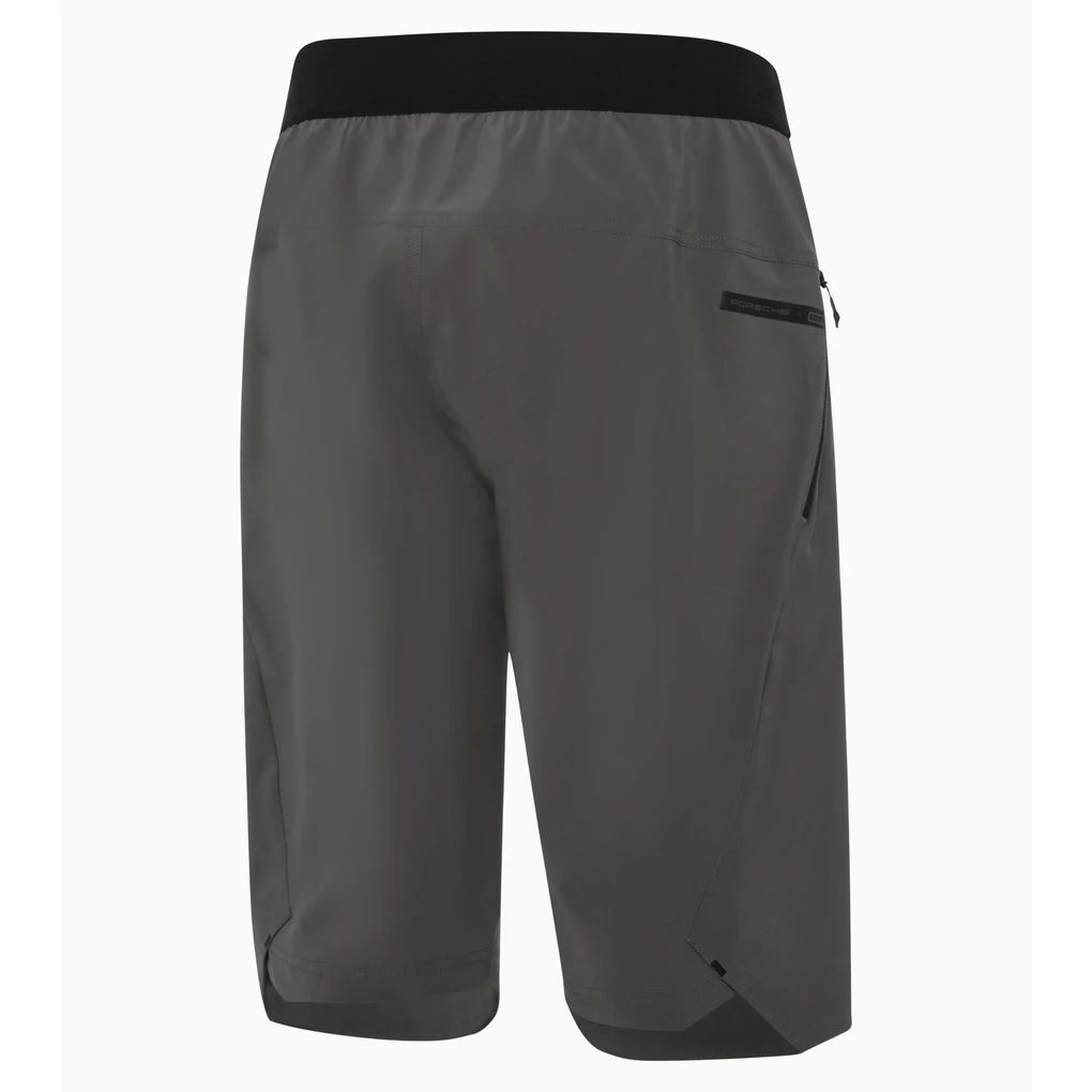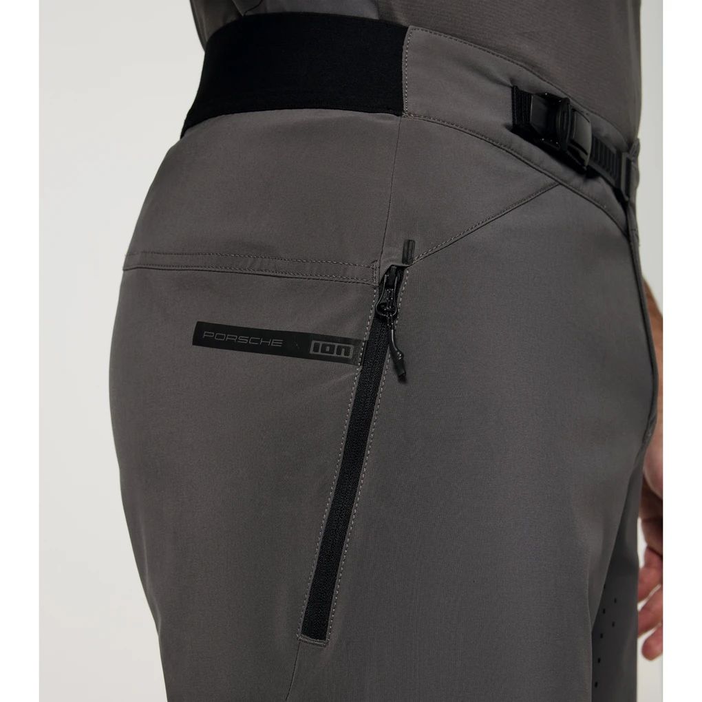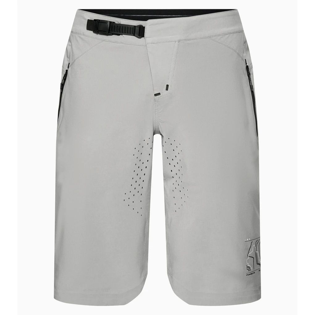 Porsche x ION Bike-Shorts für optimale Bewegungsfreiheit. Laser-geschnittene Belüftungslöchern verleihen ihr explizite Atmungsaktivität, während 4-Wege-Stretch für genau die Flexibilität sorgt, die du beim Mountainbiken brauchst. Ein elastischer Bundeinsatz und ein flacher Ratschenverschluss auf der Vorderseite, der Druckstellen während der Fahrt verhindert, sorgen für puren Fahrkomfort.