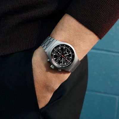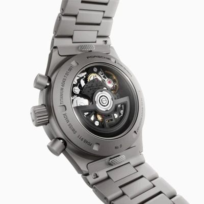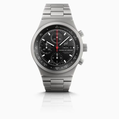 Vollständig aus Titan. Und voller Geschichte. 1975 gelang es Prof. Ferdinand Alexander Porsche, den kontrastreichen Look des Chronograph I auf eine völlig neue Art zu kreieren – durch die Kombination von schwarzem Zifferblatt und unbeschichtetem, gebürstetem Edelstahl. Für optimale Ablesbarkeit reduzierte die matte Oberfläche Reflexionen ebenso zuverlässig wie beim vollständig schwarzen Original – erreichte dabei aber durch das kraftvolle und puristische Design eine ganz eigene Faszination. Dieses Design führt der Chronograph 1 – All Titanium Numbered Edition konsequent fort: mit einem Gehäuse aus vollständig unbeschichtetem Titan und eigenständig gestalteten Details. So wird unter anderem das Zifferblatt vom aktuellen Porsche Design Logo und dem „Chronometer Certified“-Schriftzug in Cool Gray vollendet. Von Meisterhand gefertigt in der neuen Porsche Uhrenmanufaktur in Grenchen in der Schweiz. Ganz neu – und doch schon ein Klassiker.