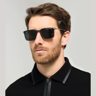• Porsche Design Branding auf dem rechten Glas und dem linken Bügel.
