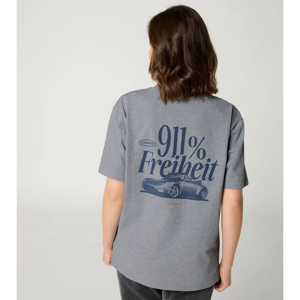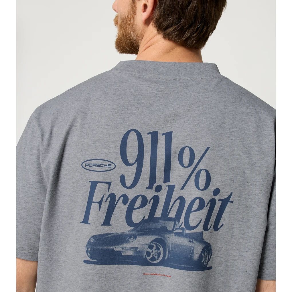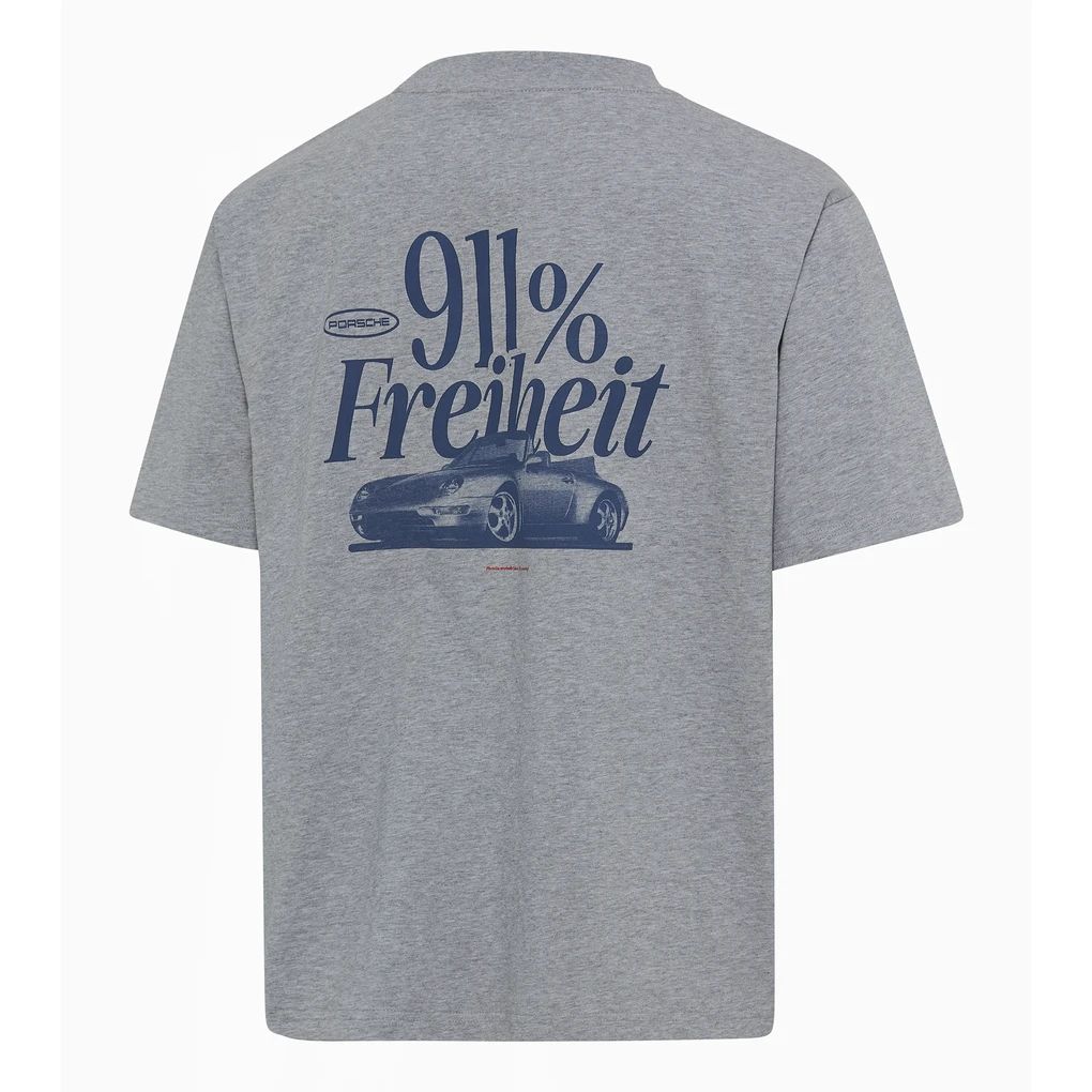 • Vintage Carrera Grafik und Slogan „911% Freiheit“ hinten – angelehnt an eine ikonische Porsche Werbeanzeige der 90er.