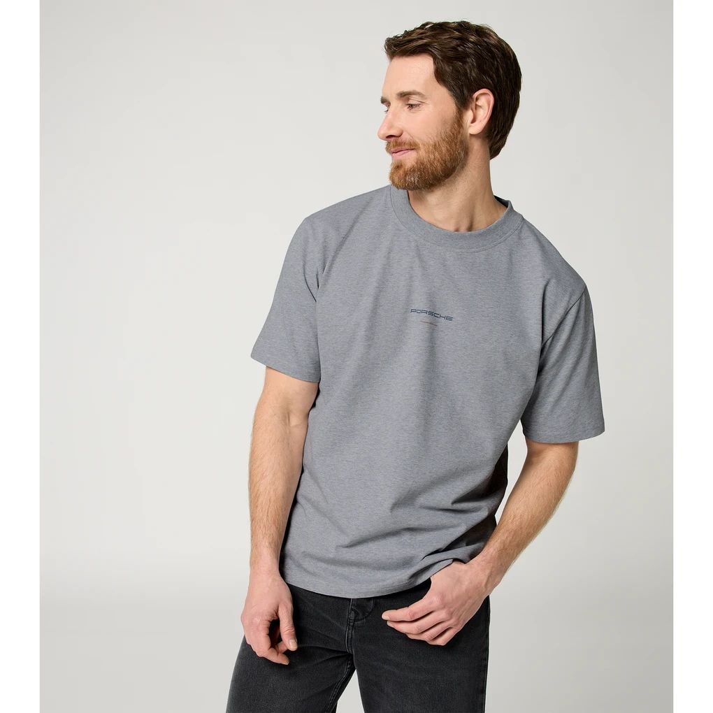 Tragen Sie nicht nur die Marke – leben Sie die Legende! Das Shirt ist Teil der ultimativen Kollektion für Porsche-Fans, die zeitlosen Stil und Rennsporttradition auf eine einzigartige Art und Weise kombiniert. Vorn klassisch minimalistisch, hinten nostalgischer Retro-Vibe – rundum überzeugend.