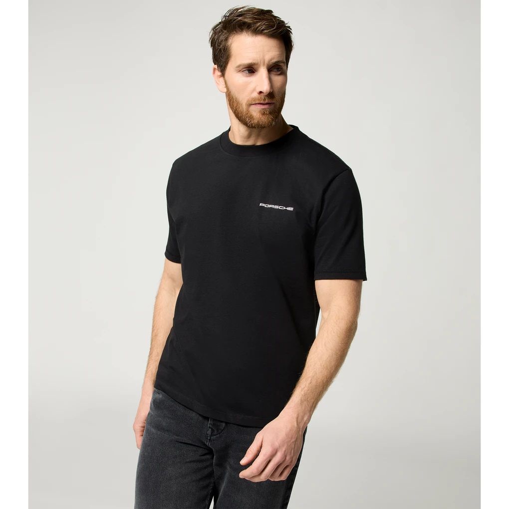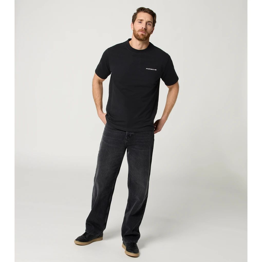 Tragen Sie nicht nur die Marke – leben Sie die Legende! Das Shirt ist Teil der ultimativen Kollektion für Porsche-Fans, die zeitlosen Stil und Rennsporttradition auf eine einzigartige Art und Weise kombiniert. Vorn klassisch minimalistisch, hinten nostalgischer Retro-Vibe – rundum überzeugend.