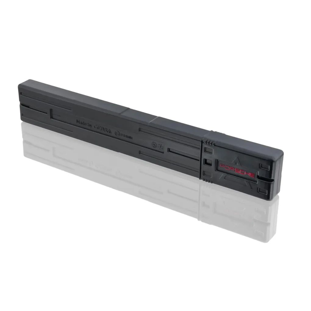 Die schwarze Verpackung ist mit dem Porsche Schriftzug versehen. Es entspricht den Vorschriften in der EU.