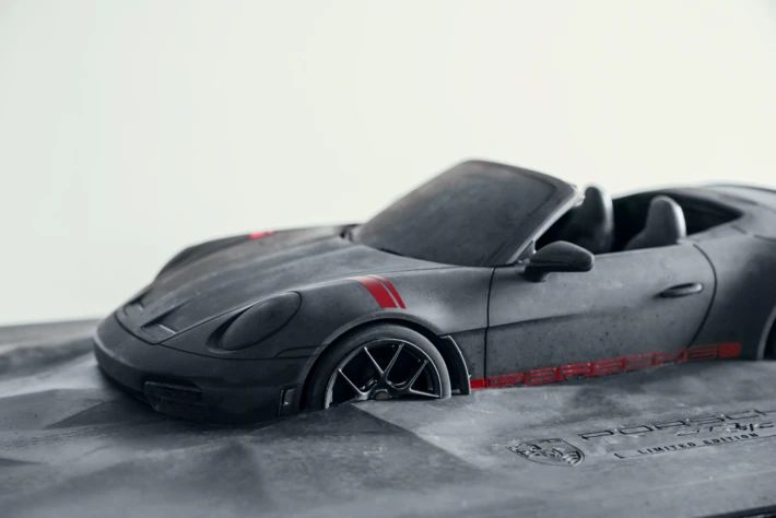 Handgefertigte Betonskulptur des Porsche 911 GT3 S/C (992.2) mit Carbonrahmen. Limited Edition.