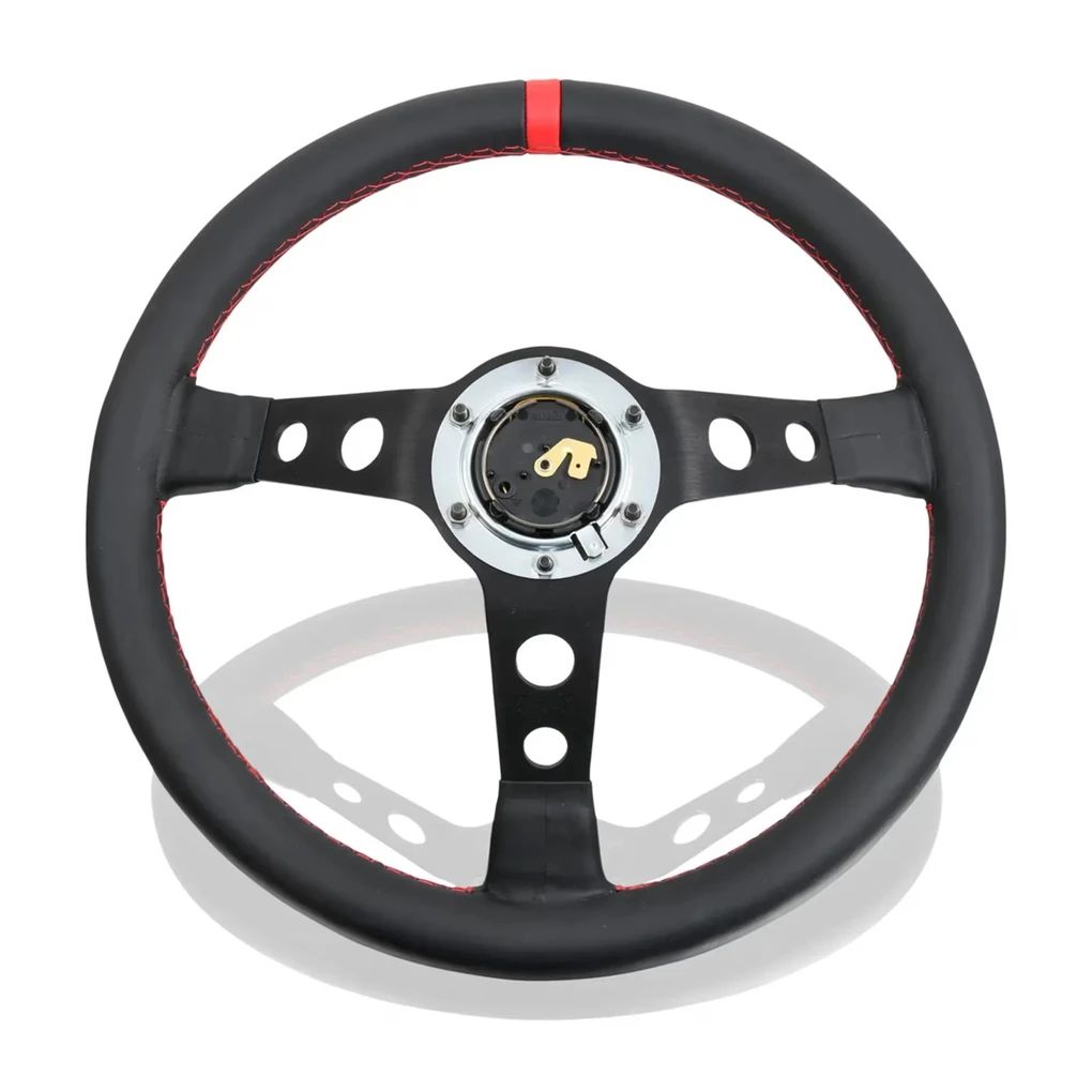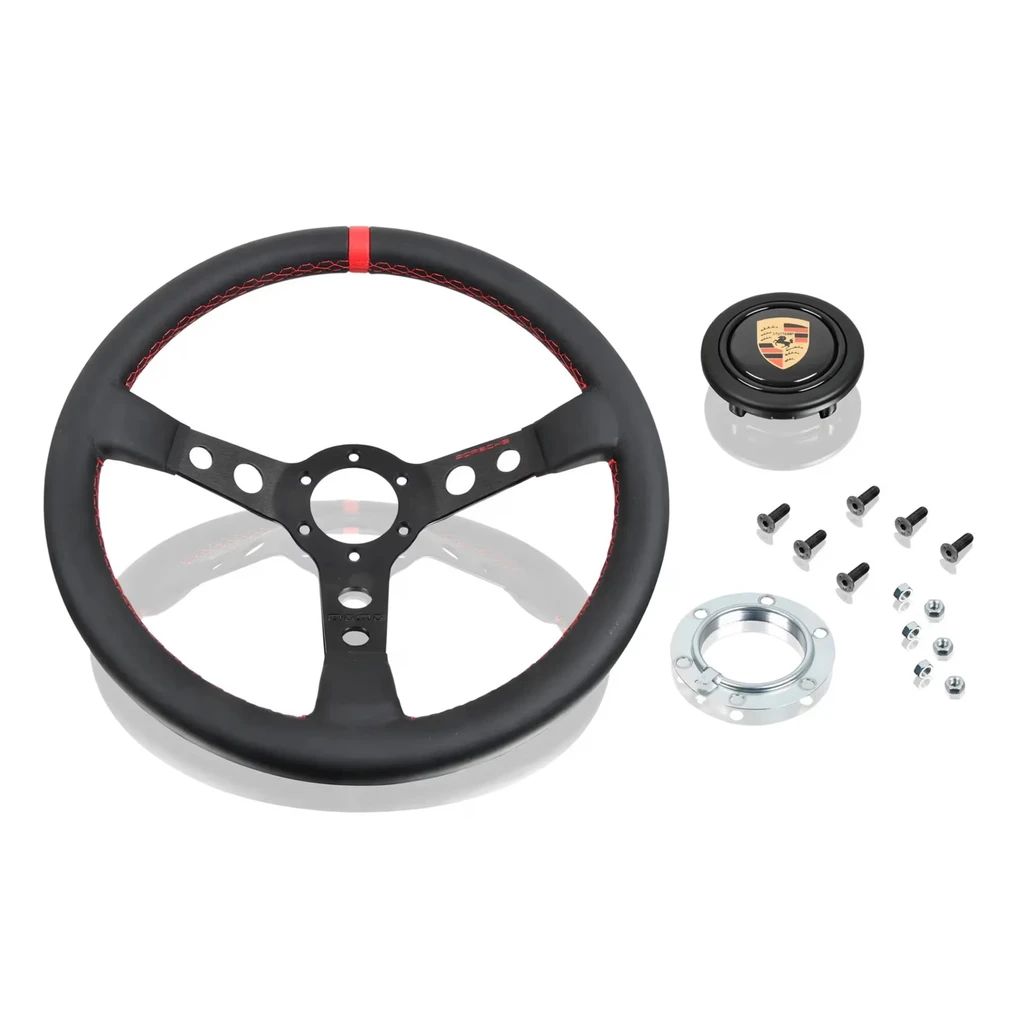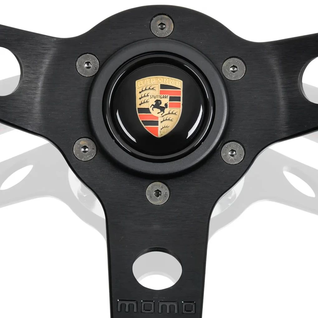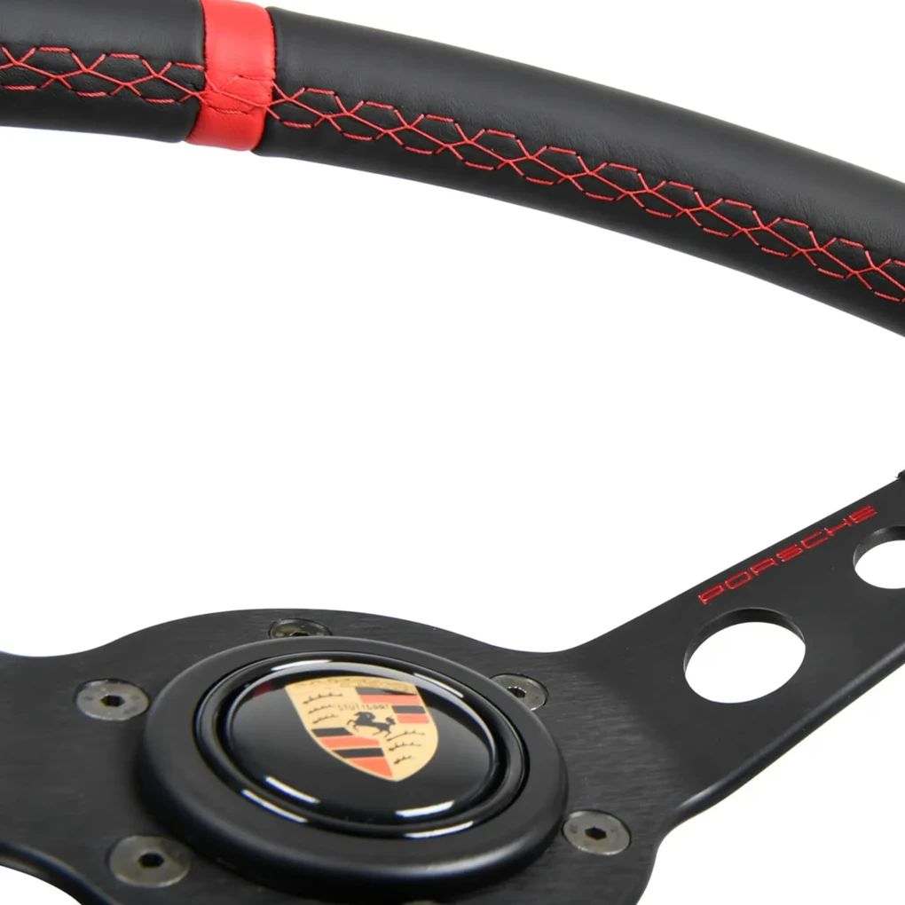 Das Porsche Classic Performance Lenkrad bringt die unverwechselbare Sportlichkeit von Porsche in Ihr Fahrzeug. Dieses hochwertige 3-Speichen Sportlenkrad wurde in Zusammenarbeit mit Momo entwickelt und besticht durch seine erstklassige Ergonomie und das zeitlose Design. Der Hupenknopf ziert das historische Porsche Wappen, während das schwarze Glattleder und der rot hinterlegte Porsche Schriftzug das ikonische Erscheinungsbild unterstreichen. Die rote Naht und die markante 12-Uhr-Markierung verleihen dem Lenkrad eine zusätzliche sportliche Note. Mit einem Außendurchmesser von 35 cm (13,78 Zoll) bietet das Porsche Classic Performance Lenkrad optimale Kontrolle und Fahrspaß.