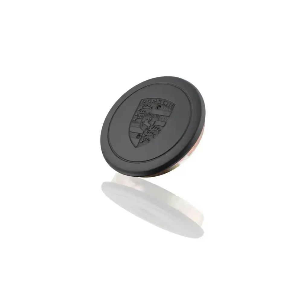 Radzierdeckel für Innendurchmesser 71mm in schwarz mit geprägtem Porsche Wappen.
