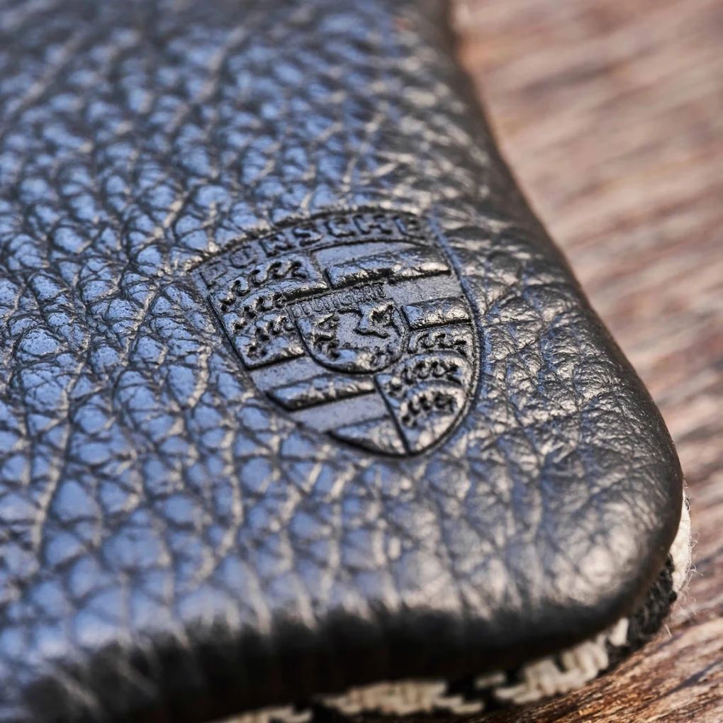 Schlüssel-Etui mit geprägtem Porschewappen für alle Porsche Modelle im Pepita Design.