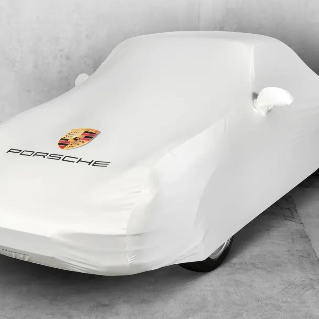Indoor-Abdeckhülle mit farbigem Porsche Wappen und Schriftzug. Bestehend aus 100 % Polyester, anti-statisch, staubabweisend und atmungsaktiv. Die Innenseite ist beschichtet und schützt die Karosserie vor Kratzern; verwendbar für Porsche 993 Carrera C2 S und C4 S der Modelljahre 1994 bis 1998 ohne Spoiler.